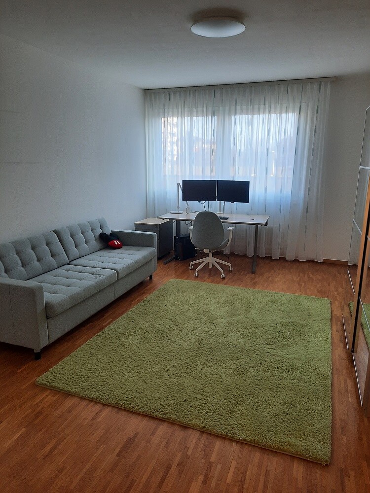 Ideal for leisure/work, for a single, couples or small families. Sleeps 2, with an option for a 3rd on the sofa in the living room. The flat is peaceful, 10 min. in bus from the city center, or 5 min. away from the lake shore. Spacious, sunny all day and noise free. There is no private parking for this property. Blue parking places are available around building and 24/7 parking is available within 7-10 min. on foot from the premises for 8CHF/day. Detailed information upon reservation.