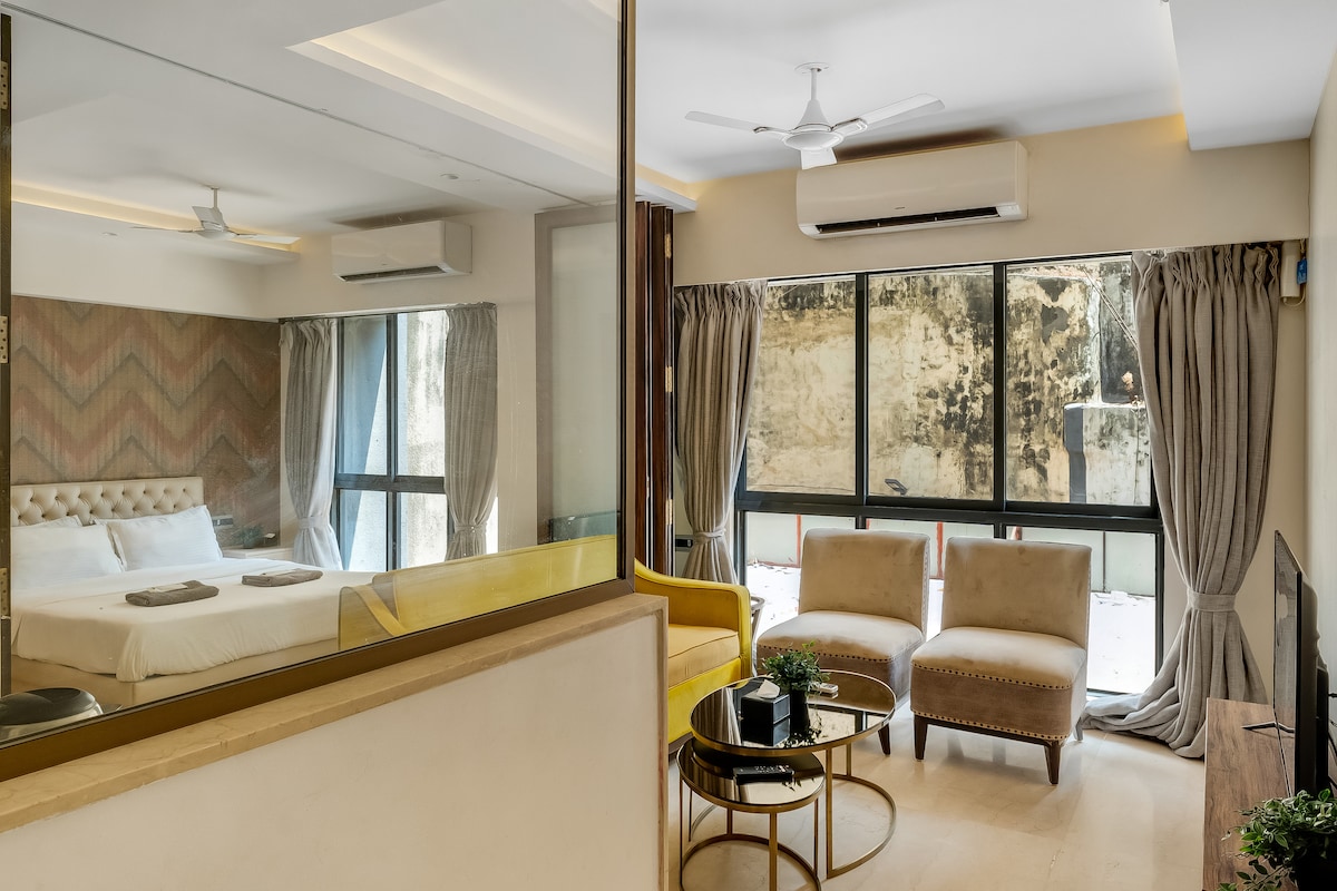Բացահայտեք ձեր քաղաքային օազիսը Մումբայի սրտում: Այս նորաոճ 1BHK տեռասային բնակարանն առաջարկում է ժամանակակից հարմարավետություն ՝ ցնցող մասնավոր տեռասով, որը կատարյալ է հանգստի կամ աստղերի տակ հարմարավետ երեկոյի համար: Գտնվելով գլխավոր թաղամասում ՝ դուք մի քանի քայլ հեռու եք քաղաքի լավագույն տեսարժան վայրերից, ճաշկերույթներից և գիշերային կյանքից ։ Կատարյալ է զույգերի, միայնակ ճանապարհորդողների կամ գործնական այցերի համար ։ Փորձեք Մումբայի ոճը ։