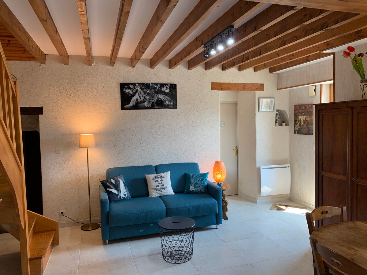 A 5 minutes de l'autoroute A6, ma maison peut accueillir 4 personnes dans ses 56 m². Au cœur d'un village très calme dans un cadre agréable, elle dispose d'une cour privative où il est possible de déjeuner aux beaux jours. Elle a le charme d'une maison ancienne avec tout le confort moderne. Très chaleureuse par temps froid, elle sait aussi garder la fraîcheur en été. Nouveautés 2020 : La fibre optique est arrivée, la TV s'agrandit et devient connectée. Cafetière Senseo