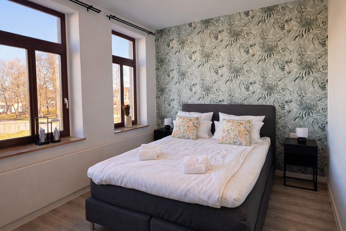 ✨ Welcome to MIILOX Apartments Chemnitz! Our 45 m² Comfort Apartment, designed in a modern boho style, offers plenty of space and comfort – ideal for small groups and longer stays. Enjoy a 🛏️ queen-size deluxe bed, a sofa bed, a spacious living area, and a 🍳 kitchenette equipped with a microwave and Nespresso machine. A 🌿 modern shower room 🛁 with a rain shower completes your stay.