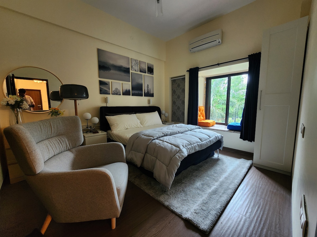 Բացահայտեք մատչելի երջանկությունը Whispering Greens-ում (C-003 INAARA)՝ մեկ ննջասենյակով և խոհանոց-սրահով բնակարանում, որը հագեցած է վինտաժային հմայքով և նախատեսված է փորձառու ճանապարհորդների համար։ Այստեղ նոստալգիկ հարմարավետությունը միավորվում է հանգստացնող հանգստի հետ, որն իր գագաթնակետին է հասնում մասնավոր պարտեզում՝ լիարժեք հանգստի համար նախատեսված ճոճվող ցանցաճոճով Ինչը ձեզ դուր կգա. Կանաչապատ պարտեզային օազիս՝ սուրճի, ընթերցանության, թռչունների երգի ներքո քնելու և հաճելի հանգստի համար անհրաժեշտ այլ բաների համար։ Լավագույն տարբերակն է կարճատև հանգստի համար միայնակ ճանապարհորդների կամ զույգերի համար։ Անզուգական արժեք՝ վինտաժային հարմարավետություն + պարտեզի հմայք։
