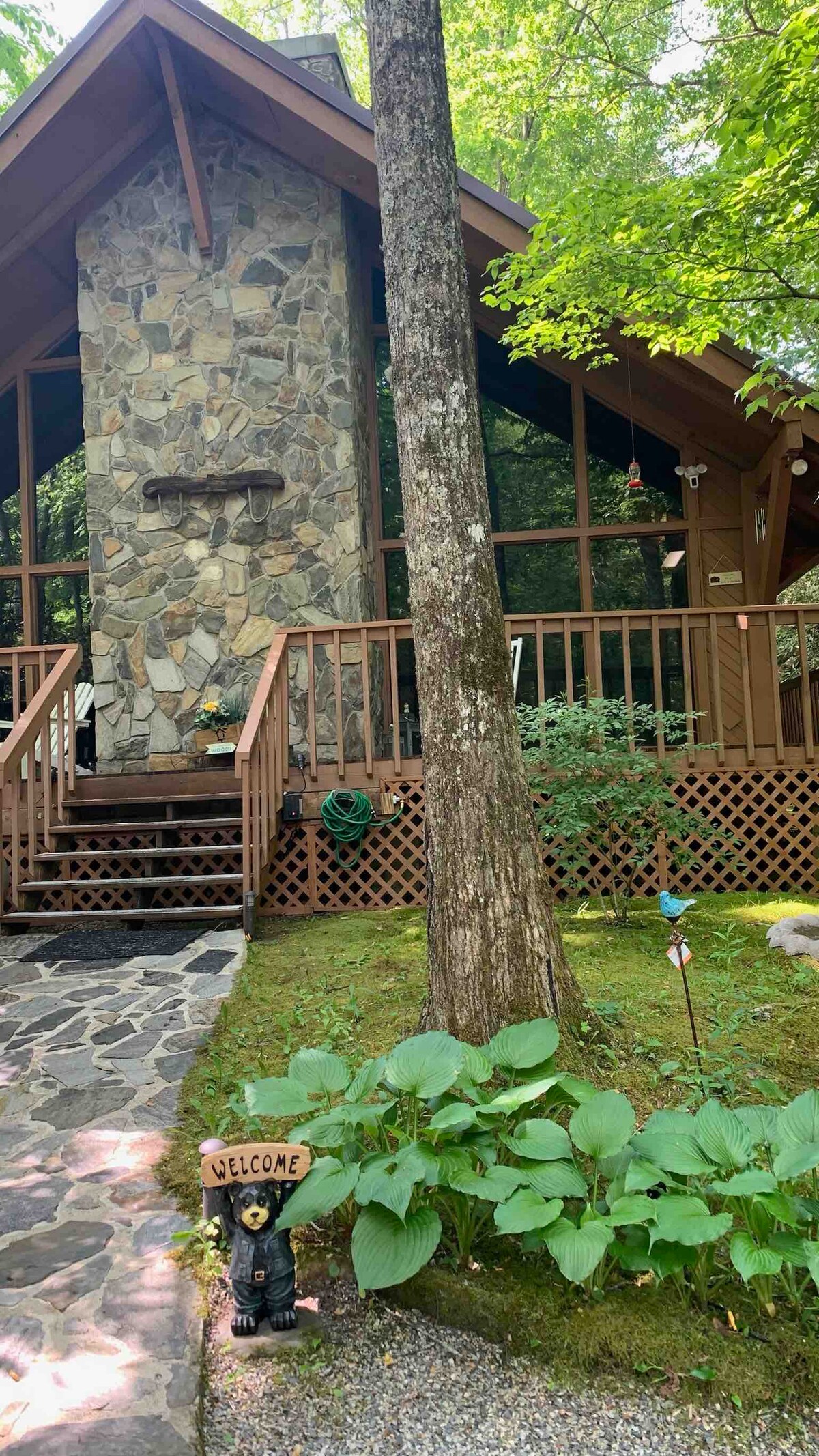 Մեր տունը բույն է դրել 2 գեղեցիկ առուների միջև ՝ մեծ ծխոտ լեռներում: Խոհանոցը, ճաշասենյակը և հյուրասենյակը ունեն բաց հատակագիծ, որտեղ ընտանիքն ու ընկերները կարող են միասին հավաքվել: Տախտակամածի շուրջ գտնվող ծածկոցը ձեզ տանում է դեպի գեղեցիկ հետևի շքամուտք, որտեղ ավելի մեծ առուները տրոհված են և հոսում տան երկու կողմերում ։ Վայելեք խնջույք, լսեք առուների հանգստացնող ձայները, երբ պառկում եք ցանցաճոճում, զվարճացեք կրակի մոտ ։ Եկեք լաստանավ, զբոսնեք, հանգստացեք, արշավեք, ուսումնասիրեք և շատ ավելին: