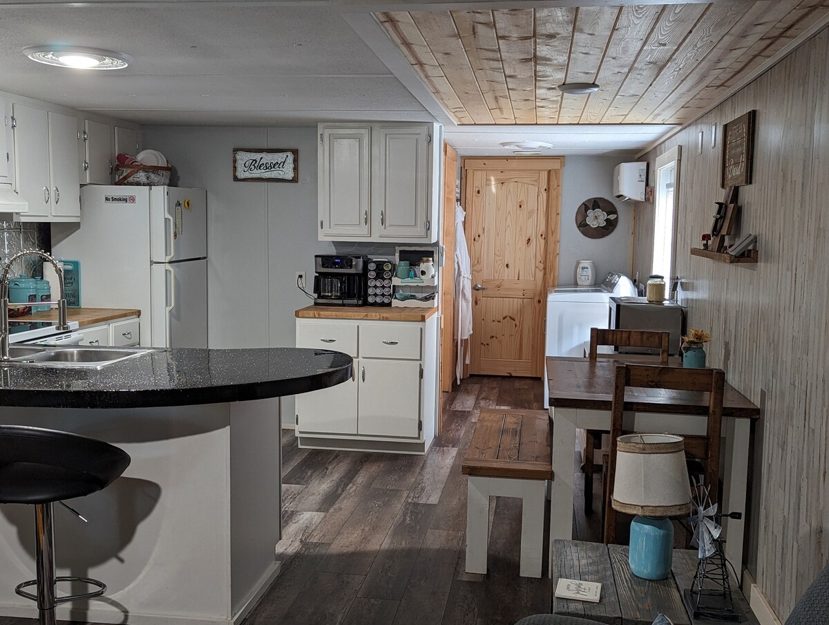 Misty Hollow Cottage at Grey Valley is a luxury one bedroom tiny home nestled in the Smoky Mountains, just minutes from downtown Robbinsville, NC. The Misty comfortably sleeps 2-4, is equipped w/washer/dryer, full kitchen, & private deck w/ BBQ grill. Perfect for small families, couples retreat or thrill seekers riding the Tail! Wheelchair accessible. Pet friendly, w/owner permission. Situated on 10 acres along gorgeous Mountain Creek, and sister to Jai Hollow Cottage, and Wounded Warrior Cabin.