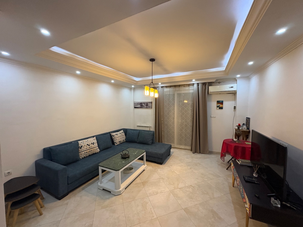 Հանգստացեք այս հանգիստ և ոճային տարածքում ։ • Լուսավոր և լավ կահավորված տարածք. վայելեք ընդարձակ հյուրասենյակ, որը իդեալական է հանգստի համար ։ • Երկու հարմարավետ ննջասենյակ. կատարյալ է ընտանիքների, ընկերների կամ բիզնես ուղևորների համար ։ • 40 մ² մեծ կտուր • Կահավորված խոհանոցը • Աշխույժ և հաճելի թաղամաս. Դելի Իբրահիմը հայտնի է իր դինամիզմով, խանութներով, սրճարաններով և ջերմ մթնոլորտով: 📍 Ամրագրեք հիմա և վայելեք հիանալի փորձառություն Ալժիրում