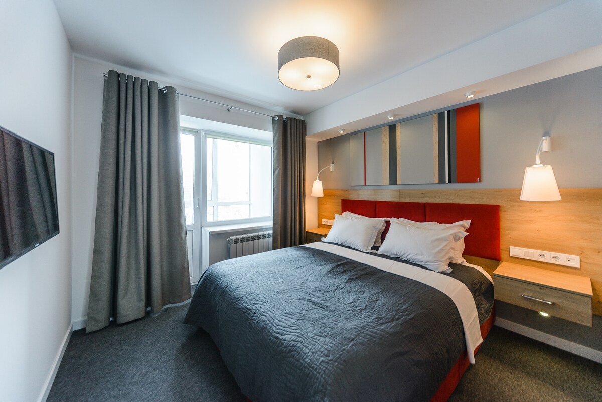Բնակարանը շատ ընդարձակ է և լուսավոր ։ Պատուհաններից երևում է Սուրբ Սոֆիայի տաճարի զանգակատունը: Սենյակում կա մեծ երկտեղանի մահճակալ, LCD հեռուստացույց, սեղան, գրասեղան, մահճակալի կողքի սեղաններ, սուրճի սեղան, զգեստապահարան, բազկաթոռներ ։ Խոհանոցում կա թեյնիկ, LCD հեռուստացույց, մինի սառնարան, ամանալվաց մեքենա, գազօջախ, միկրոալիքային վառարան, խոհանոցային պարագաներ, ափսեներ, բաժակներ ։ Կա թեյ, սուրճ, շաքար, մեկանգամյա օգտագործման ցնցուղի գել և շամպուններ, սրբիչներ, անկողնային սպիտակեղեն, վարսահարդարիչ և արդուկ ։ Ցնցուղի խորանարդիկ, լվացքի մեքենա