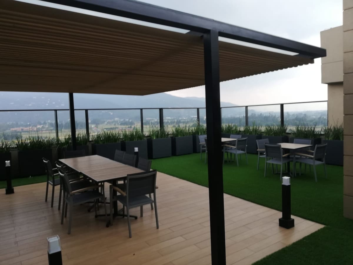 Ժամանակակից բնակարան ՝ գեղեցիկ լեռնային տեսարանով Չիայում ։ Նվիրված խոհանոցով, կաբելային հեռուստատեսությամբ, Netflix - ով և ձայնային ուժեղացուցիչով ։ Վայելեք զով և հանգիստ տարածքը ։ Հանգստացեք քաղաքից նոր բնակարանում ՝ ազատ տարածքում ։ Այն ունի այգի, ընդհանուր սենյակ, տեռաս, խորոված, շատ լավ կահավորված մարզասրահ և գեղեցիկ տեսարան: Այն ունի կայանատեղի, համագործակցային սենյակ, խաղեր և կինոդահլիճ ։ Մոտակայքում է Universidad de la Sabana, Centro Chia y Fontanar - ը ։ Հիանալի վայր է ռեստորաններին մոտ: