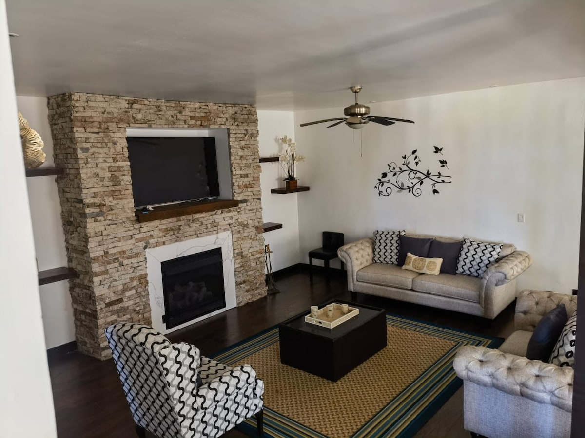 Բարի գալուստ հանգստի համար նախատեսված տարածք։ Մեր տունը միավորում է մասնավոր բացօթյա ջակուզին, իդեալական վայրը, որը կապում է ձեզ ամբողջ քաղաքի հետ, և հարմարավետ հեռուստացույցի տարածքը՝ ստեղծելով հանգստի կամ աշխատանքի կատարյալ միջավայր։ Չիհուախուայի ամենակարևոր վայրերից մի քանի րոպե հեռու, ռեստորանների, խանութների և պողոտաների հասանելիությամբ Երբ վերադառնաք, կարող եք վայելել ջակուզին, ուտելիք պատրաստել կամ պարզապես ֆիլմ դիտել հարմարավետ տարածքում։ Իդեալական է զույգերի, գործնական ուղևորությունների և ընտանիքի համար։