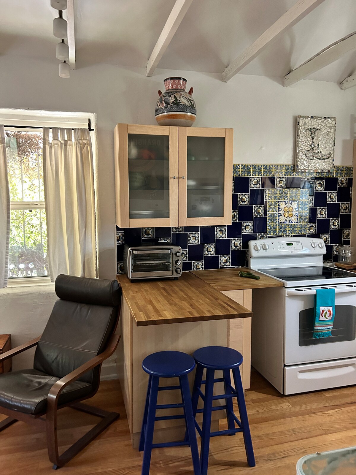 This unique, spacious, updated & authentic adobe is located in the historic Barrio Viejo of Tucson, nestled between downtown and Five Points. This desert Adobe has been abandoned since the 1970’s, but is now revitalized with new amenities, exposing the beautiful adobe walls and preserving the original ceilings. The fully stocked kitchen includes a gas range, dishwasher and granite countertops. Enjoy the smart TV in both the bedroom and living room. King size bed in bedroom