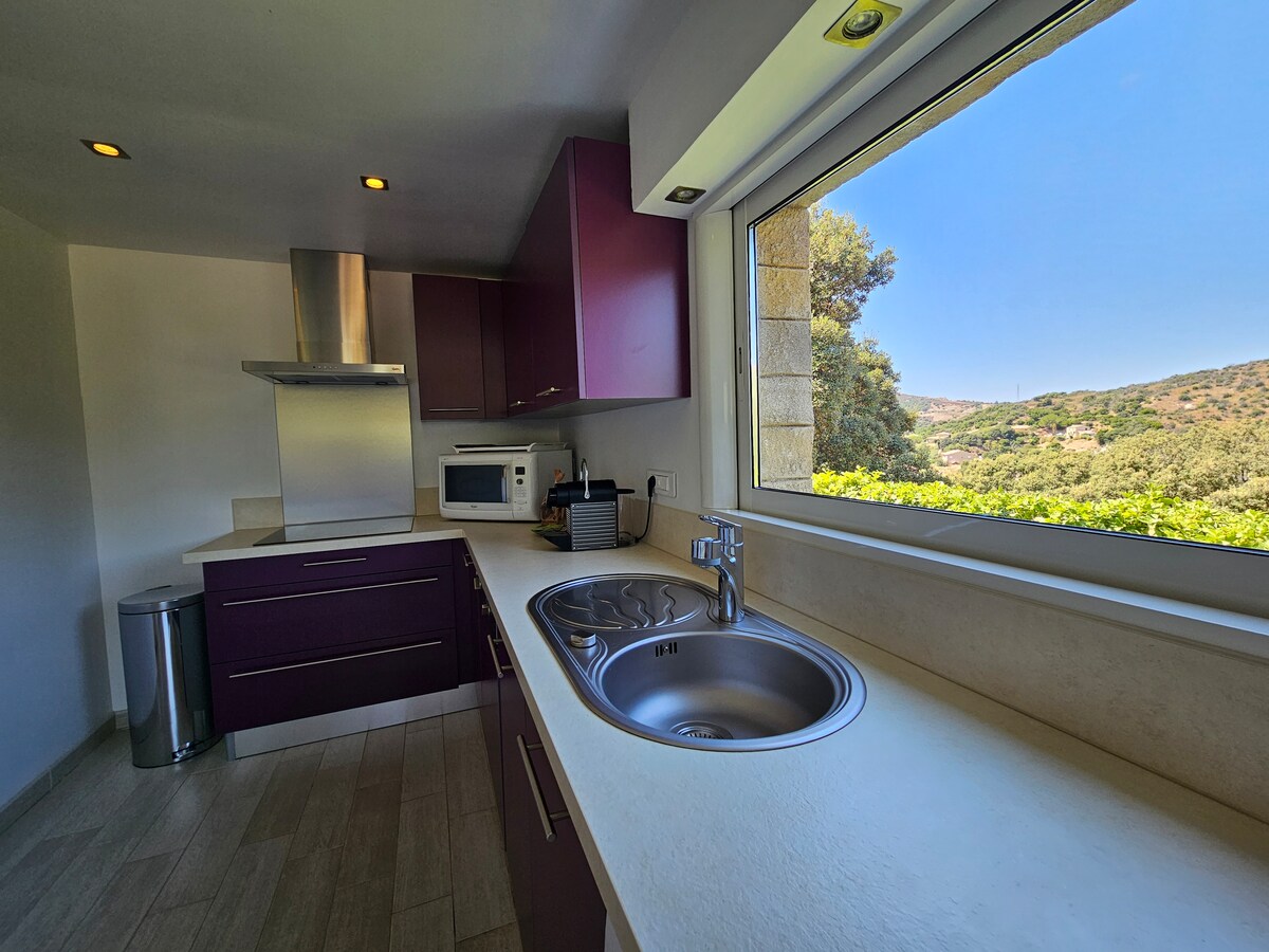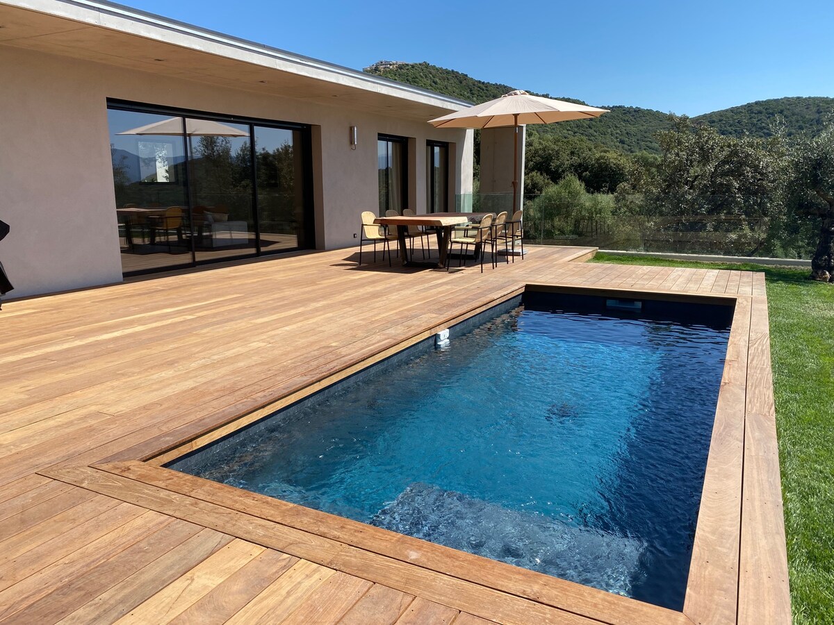 Charme et Sérénité dans un panorama exceptionnel Vous découvrirez à partir d’une terrasse en ipé de 80m2, une vue panoramique sur la mer et le maquis. Vous prendrez vos petits déjeuners et vos repas et profiterez de votre piscine des merveilleux couchers de soleil sur la mer Corse et prendrez l’apéritif dans un salon dominant la vallée toujours face à la mer. Vous pourrez découvrir les espèces endémiques du maquis et profiter d’endroits ombragés inspirant quiétude et repos.