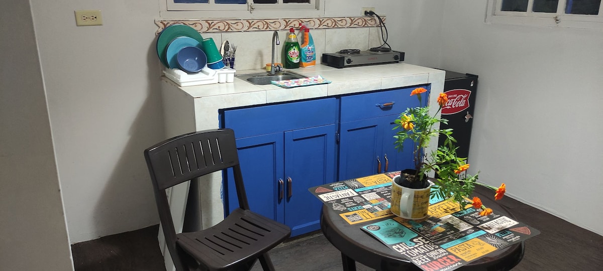 Situated up in the mountains, above Boquete, The Kolibrie Spot is a stone house filled with stories of a thousand travels. Enjoy your meals or casual conversation from inside or on the shared open terrace while watching the gorgeous view of Boquete and the mountains. Equipped with a full kitchen, appliances, living and dinning area, two bedrooms and one bathroom, this area is ideal for longer stays.