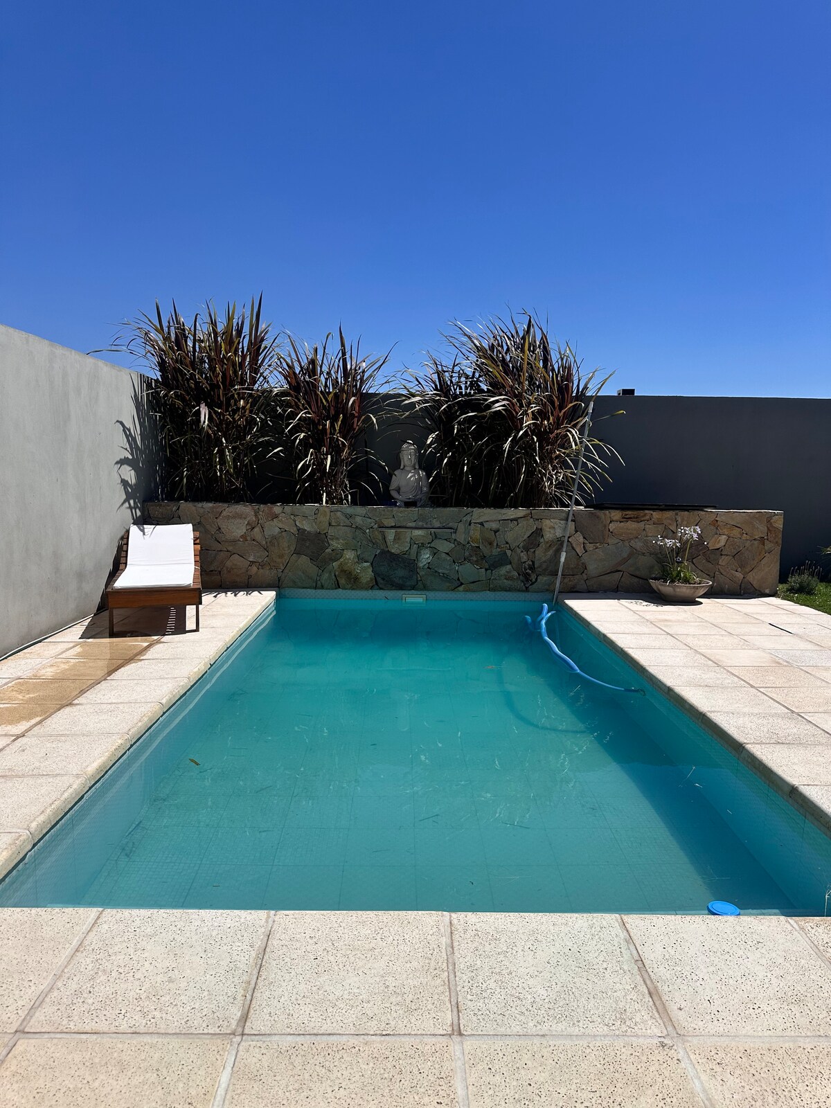 Ubicada en la zona de quintas de Chivilcoy, a 10 minutos en auto del centro comercIal este alojamiento es ideal para una estadía relajante y tranquila. La casa cuenta con dos habitaciones, una con cama matrimonial y otra con tres camas individuales, cocina comedor de concepto abierto, cocina completa con horno de gas, barra de desayuno, nevera y todo lo que necesitas para cocinar. Dos baños modernos completos con cómodas duchas, espacios verdes, piscina y parrila.