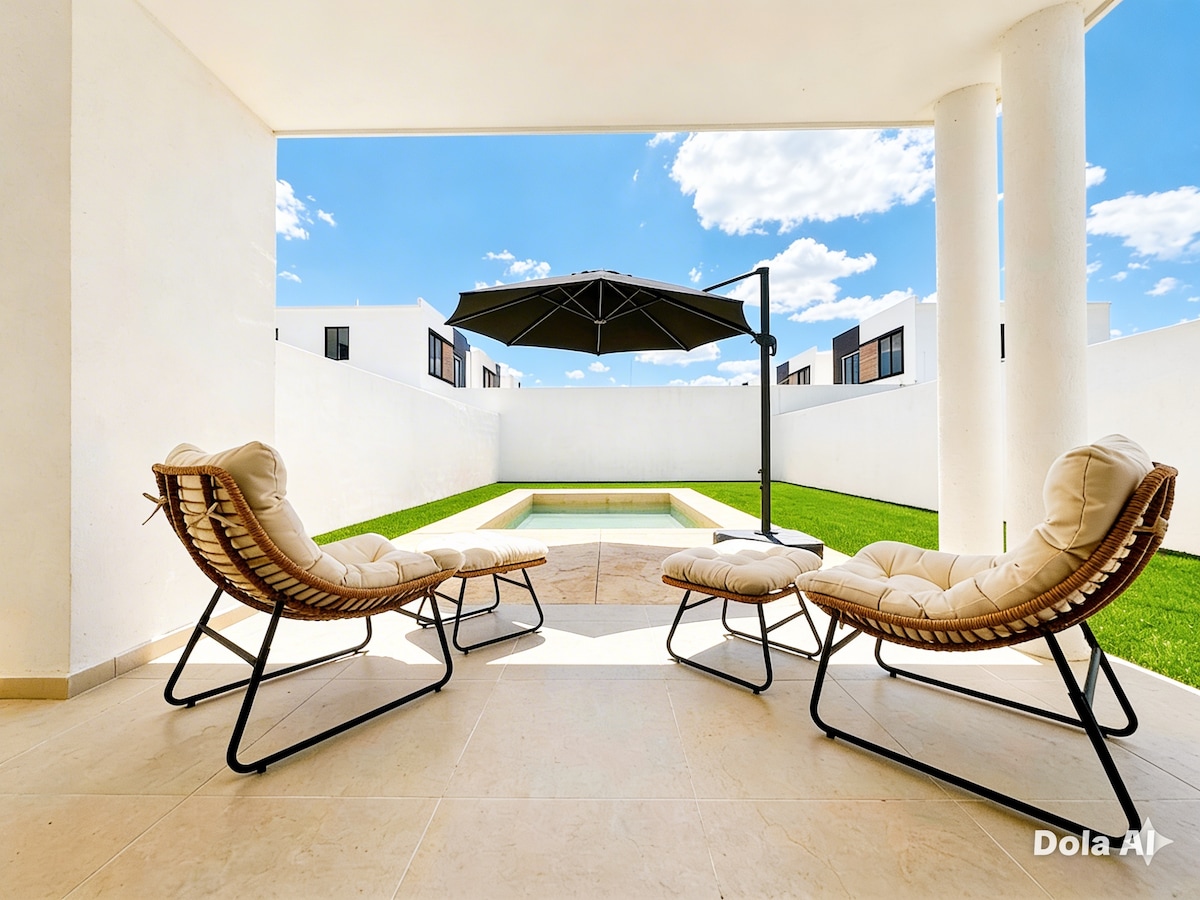Family Retreat in Merida | 24/7 Security & Private Pool Looking for an unforgettable and safe vacation? Our home in Botanico Conkal offers everything your family needs. Leave the stress behind in an exclusive and protected environment. • Spacious Living: Perfect for groups of up to 8 guests. • Guaranteed Fun: A refreshing private pool for those warm afternoons. • Total Peace of Mind: Gated access and around-the-clock security. • All the Comforts: Fully equipped for both short and long-term
