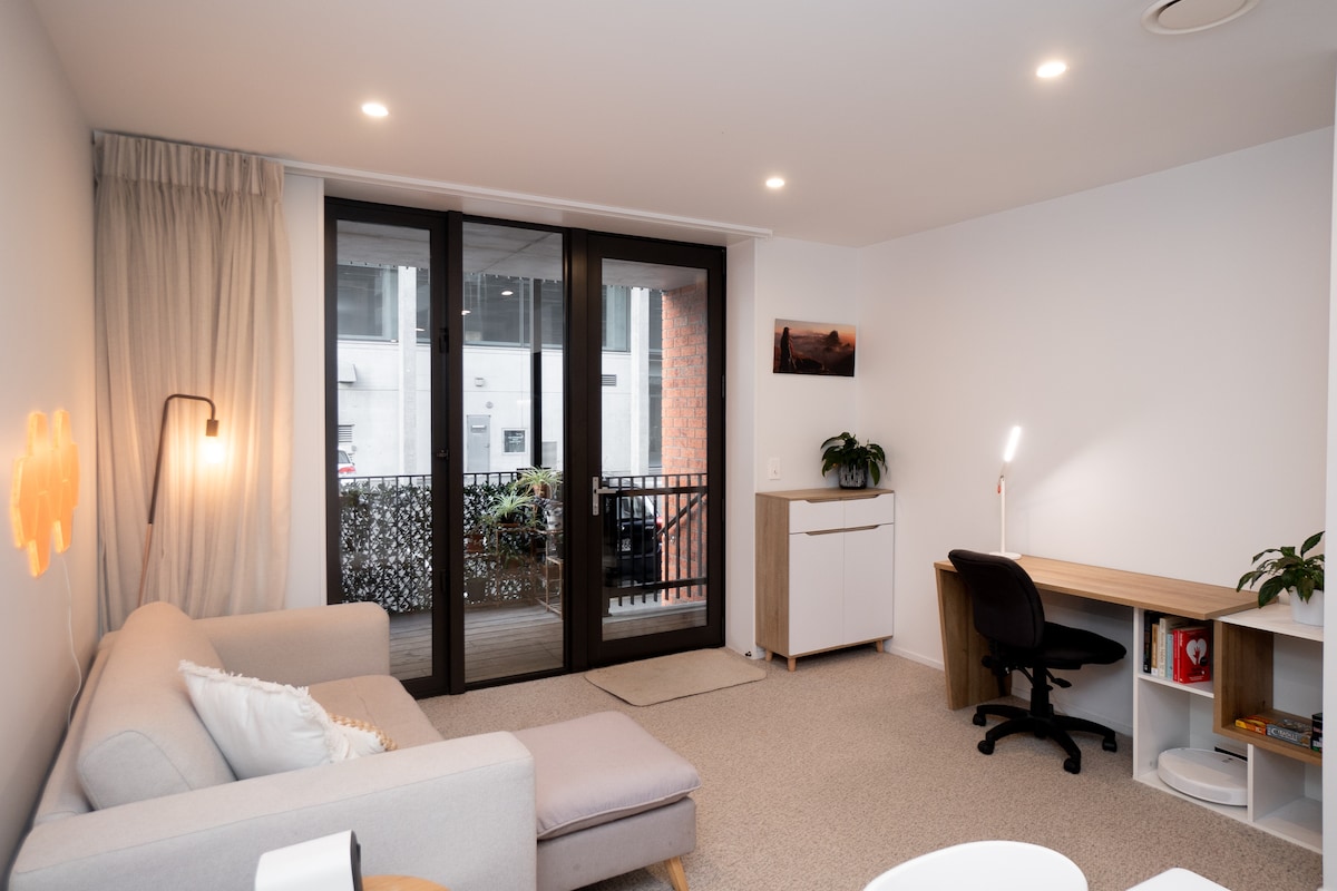 Step into this luxurious clean 1BRM nestled in Christchurch Central. Three minutes walk to supermarket, chemist, cafe and restaurants. Lounge the day away on the sunny balcony or walk around the city. Amazing five star reviews on cleanliness , location and overall stay. Exclusive Gated Free Car Park so no stress trying to find a park or worry about safety. Quiet Street Very clean Warm/cooling air conditioning Fully Equipped Kitchen Ensuite - underfloor heating Smart TV High-speed Wifi