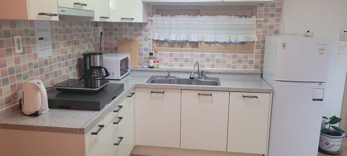 Հանգստացնող գյուղական վայրեր, գյուղական հանգիստ ՝ քաղաքից հեռու ։ Կատարյալ տարածք գյուղական հանգստի համար, որտեղ կարող եք բուժում գտնել բնության գրկում ՝ քաղաքի աղմուկով և եռուզեռով: Վերականգնել մարմինը և միտքը «Հակգոլ Սարանգբանգում », որը լի է մաքուր օդով, գեղեցիկ այգիներով և գյուղական վայրերի ջերմ ոգով :-) Ընդունելության ցուցումներ 1. Հասցե ՝ 9 -5 Anyanggol 2 - gil, Yugu - eup, Gongju - si, Chungnam > Ժամանում ՝ 15:00 > Մեկնում ՝ հաջորդ օրը ՝ ժամը 11:00 2. Սրբիչները/օճառը/շամպունը տրամադրվում են որպես ստանդարտ ՝ «Ատամի խոզանակը պատրաստվում է առանձին» 3. Էլեկտրական բրնձի կաթսա, խոհանոցային պարագաներ, սպասք 4. Խորովածի փայտածուխի աքցաններ/ձեռնոցներ/ջահ, որը տրամադրվում է որպես ստանդարտ > Տեղում նախապատրաստումը հնարավոր է փայտածուխի/մետաղալարի ցանցի/վառելափայտի պահանջով, և խնդրում ենք նախապես պահանջել: > Գրիլի մանղալ ՝ 30 000 կՎտ (ներառյալ փայտածուխ + երկաթե ափսե) > Կաթսայի կափարիչի խորոված ՝ 30 000 կՎտ > Լրացուցիչ վառելափայտ ՝ 20 000 կՎտ (2 ժամվա ընթացքում) 5. Hakgol Sarangbang Official Instagram Account: @ hakgol_sarangbang