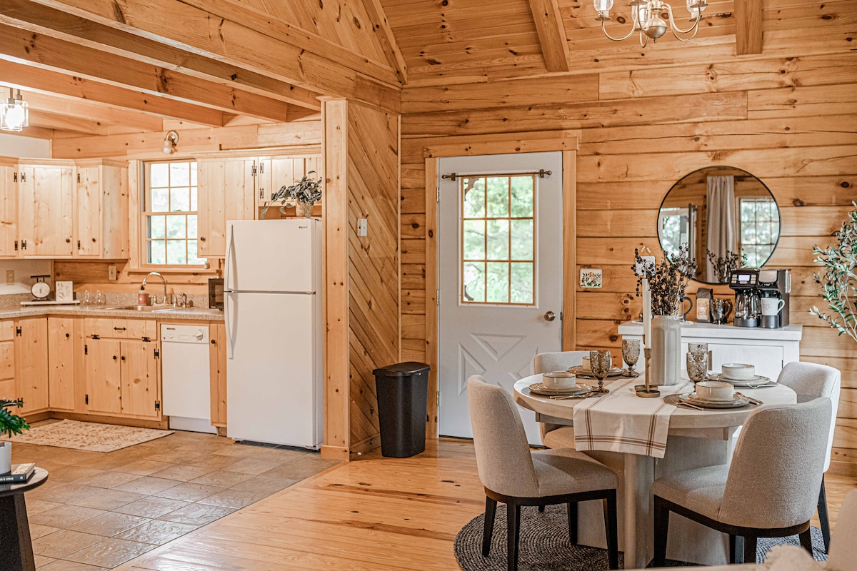 Հյուրերի հարմարավետ առանձնաբաժին, որը կցված է հիմնական տանը ՝ լոգախցիկ գյուղում ։ Ամբողջական խոհանոց, ճաշասենյակ, փայտի վառարան, հարմարավետ երկտեղանի մահճակալ, պահարան, խաղեր, 100 ֆիլմ: Ցնցուղով և ներկառուցված նստատեղով ։ Լվացքասենյակ ՝ տախտակամածի դռնով, բիստրոյի սեղաններով, կրակարանով ։ Կամարակապ հյուրասենյակում կա մեկ քնելու համար նախատեսված սիրո նստատեղ, հեռուստացույց [ROKU, You Tube TV, HULU, Netflix, Amazon, Disney], Blu - Ray նվագարկիչ և Google Nest Mini: Վայելեք նախաճաշի պարագաները, ինչպիսիք են թարմ ձուն, հյութը, կաթը, հացը, սուրճը, թեյը և մեր տնական պիցցելը: