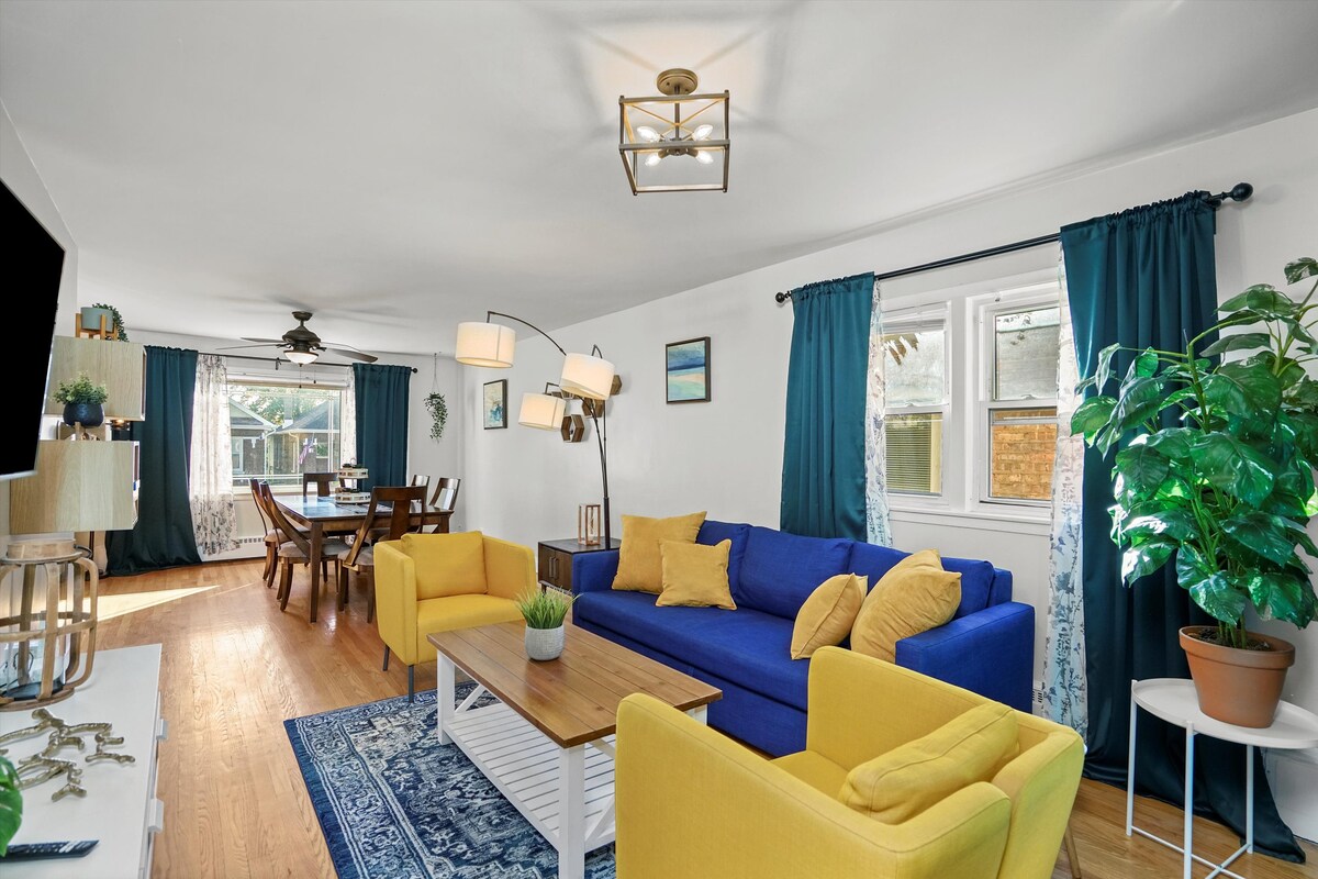 Զգացեք քաղաքի ոճը Retro Modern Bungalow - ում, որը կատարյալ պահոց է մինչև 4 ընկերոջ համար ։ Ներկայացնում ենք երկու ընդարձակ ննջասենյակ ՝ մեծ մահճակալով և շքեղ սպիտակեղենով ՝ պրոպանե կրակարանով և ամբողջովին ցանկապատված, շների համար հարմար հետնաբակով ։ Վայելեք կենտրոնական ՀՎԱԿ - ը, արագ Wi - Fi - ը և հատուկ աշխատանքային տարածքը ։ Օրորոցն անվճար է ։ Կենտրոնական վայրը ՝ Օք Փարքից անմիջապես հարավ, Միդվեյի օդանավակայանից 15 րոպե հեռավորության վրա և կենտրոնից 20 րոպե հեռավորության վրա ։ Անվճար կայանեք մեր ավտոտնակում կամ մի քանի թաղամաս հեռավորության վրա բռնեք գնացքը ։