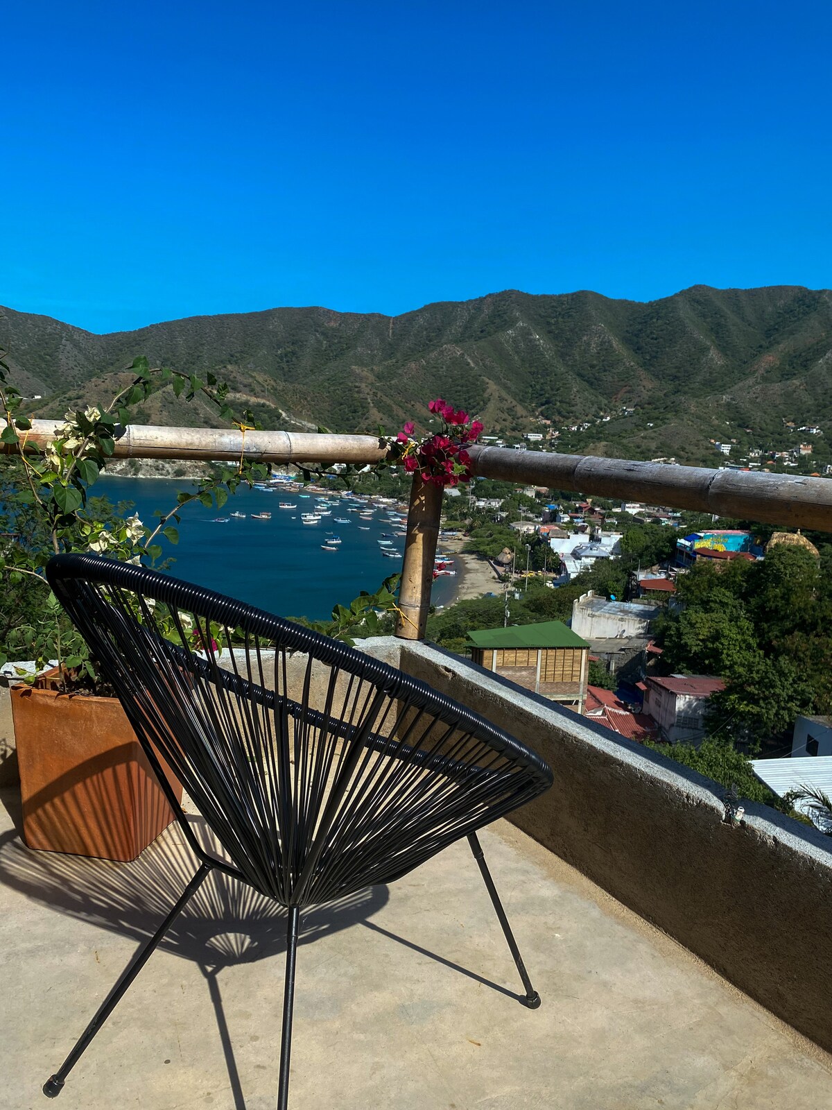 Cierre del Parque Tayrona entre el 1 y el 15 de febrero 2026. Espectacular vista a la bahía, diseño elegante y cómodo, perfecto para disfrutar de días de descanso en pareja o temporadas largas de trabajo. Cocina completa con vista a la bahía. Amplia terraza privada, aircon, wifi, fibra óptica, televisor conectado a internet. Área social con amplia piscina compartida, vista a la bahía, barbacoa y sitio de descanso. Loft no apto para niños, ni personas con limitaciones para caminar.