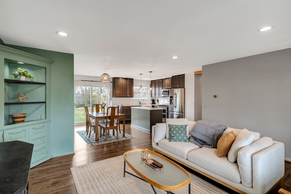 Stay at this spacious, family friendly 4 bed 3 bath ranch house - all on 1 level! Also includes 2 car garage & plenty of driveway parking Gather around the patio in the morning with your coffee or in the evening when the sun goes down. Watch a movie in the dark theater room in the basement (and comes with popcorn!) 9 min to Spooky Nook, Hamilton 15 min to Liberty Township Hospital, West Chester, Voice of America Fast, 500Mbps WiFi throughout the house