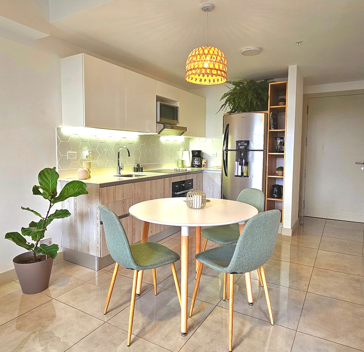 Բոլորովին նոր շքեղ բնակարան Նուկլեո Սաբանայում ։ Այն ունի մինիմալիստական ոճ ՝ բոլորովին նոր բոլոր սարքերով, այդ թվում ՝ A/C, 2 սմարթ հեռուստացույց ։ Գերարագ ինտերնետ ՝ հեռուստացույցների սպասարկմամբ ։ Լվացքասենյակում կա լվացքի մեքենա/չորանոց, 2 - ը ՝ 1 - ից ։ Այստեղից հիանալի տեսարան է բացվում դեպի ծառերի գագաթը, իսկ պատշգամբում ՝ երկինքը ։ Կողքին գետ կա, այնպես որ միշտ կարող եք վայելել գետի ձայնը: Համալիր ՝ ավելի քան 30 հարմարություն, այդ թվում ՝ գաստրոնոմիական շուկա(NucleoGastro )։ Գտնվում է Խուան Սանտամարիա Ինտել օդանավակայանից (SJO) 10 րոպե հեռավորության վրա ։