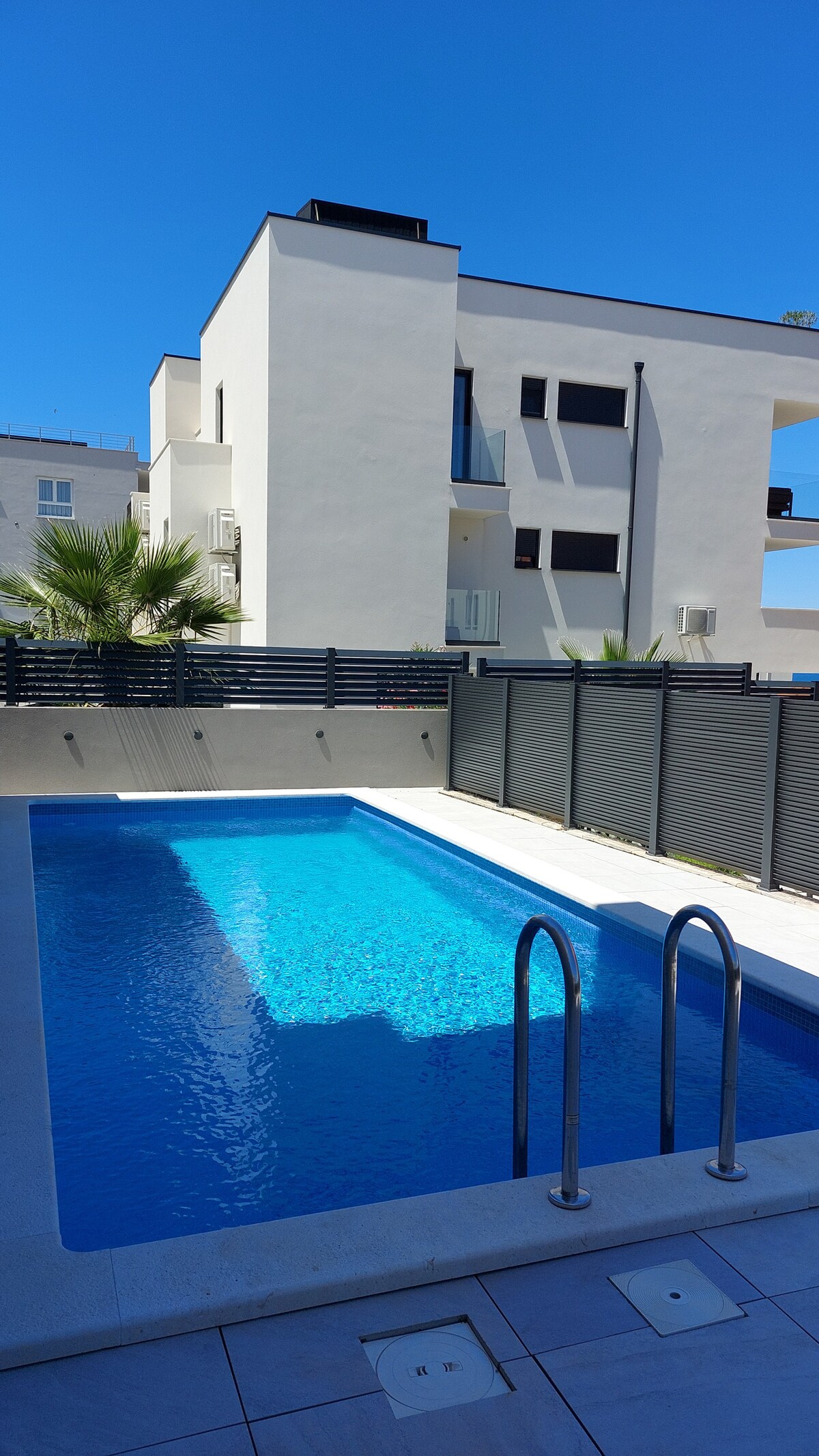 Ժամանակակից բնակարան՝ համայնապատկերային տեսարաններով։ Բնակարանը լավ կահավորված է և ունի այն ամենը, ինչ անհրաժեշտ է հանգստի համար: Այն գտնվում է Չիովո կղզում՝ Տրոգիրի մոտակայքում, Սպլիտի օդանավակայանից ընդամենը 10 կմ հեռավորության վրա։ Բնակարանում կա 3 ննջասենյակ 6 անձի համար, 2 լոգասենյակ և լրացուցիչ զուգարան, ինչպես նաև բաց հարթակով հյուրասենյակ/խոհանոց՝ դեպի պատշգամբ տանող ելքով և ճաշասենյակային տարածքով։ Կա նաև մեծ տանիքի տեռաս՝ հանգստի կահույքով և ֆանտաստիկ տեսարաններով։ Բացի այդ, կա հաճելի լողավազան և արևի աթոռներ։
