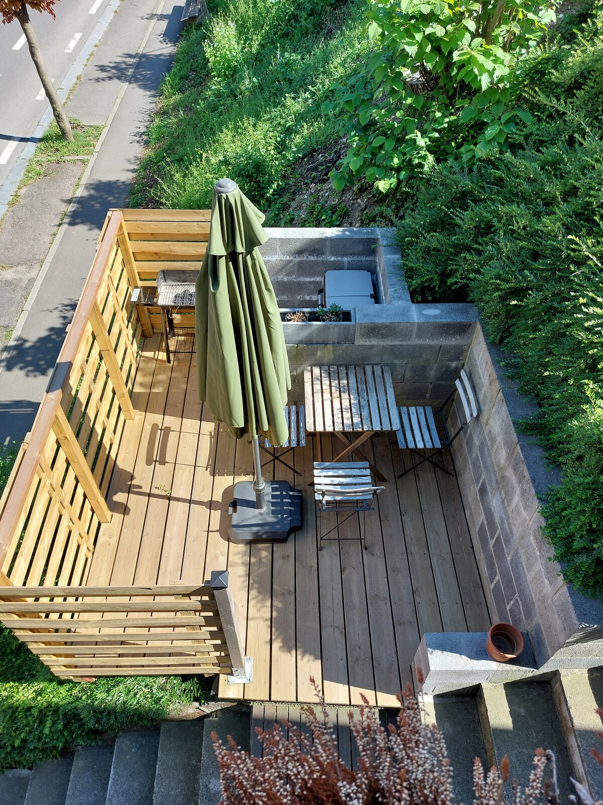 Studio pour 2 personnes entièrement équipé et privé (SDB, cuisine, Wifi…). Rénové en 2022 avec terrasse et situé dans un écrin de verdure au calme à la Citadelle. Easy and big car parking. Lit double, confortable pour le dos. You are on the Citadel So visiting this great monument can be done on foot. The City centre is at 5min with the telepheric. It can also be easily done on foot too (or bike, car…). Voor wandelaars/trailers/: prachtige bossen op wandelafstand. MTB: 7 parcours starten op 1km