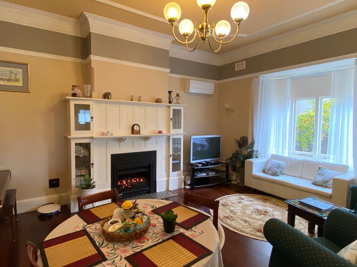 Stay in an air-conditioned private guest suite with a comfortable king bed, living area, porch, and bathroom featuring in-floor heating. Just a short walk to the South Perth Foreshore and close to the Victoria Park café strip, with bus connections nearby and free on-street parking. Perfect for quiet, comfortable stays in a peaceful, self-contained space—ideal for couples, solo travelers, or business guests. A microwave, mini fridge, kettle and outdoor Gas grill is provided for light cooking.