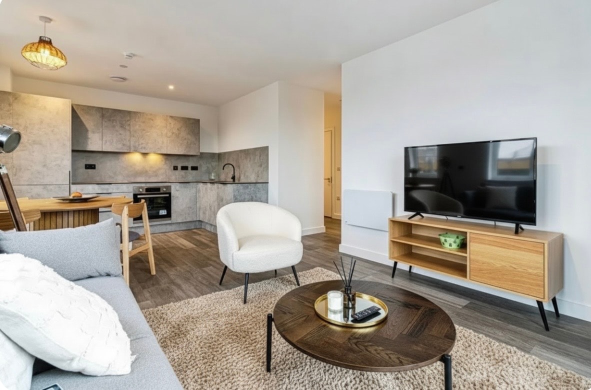 Modern apartment w/balcony in Urmston town centre