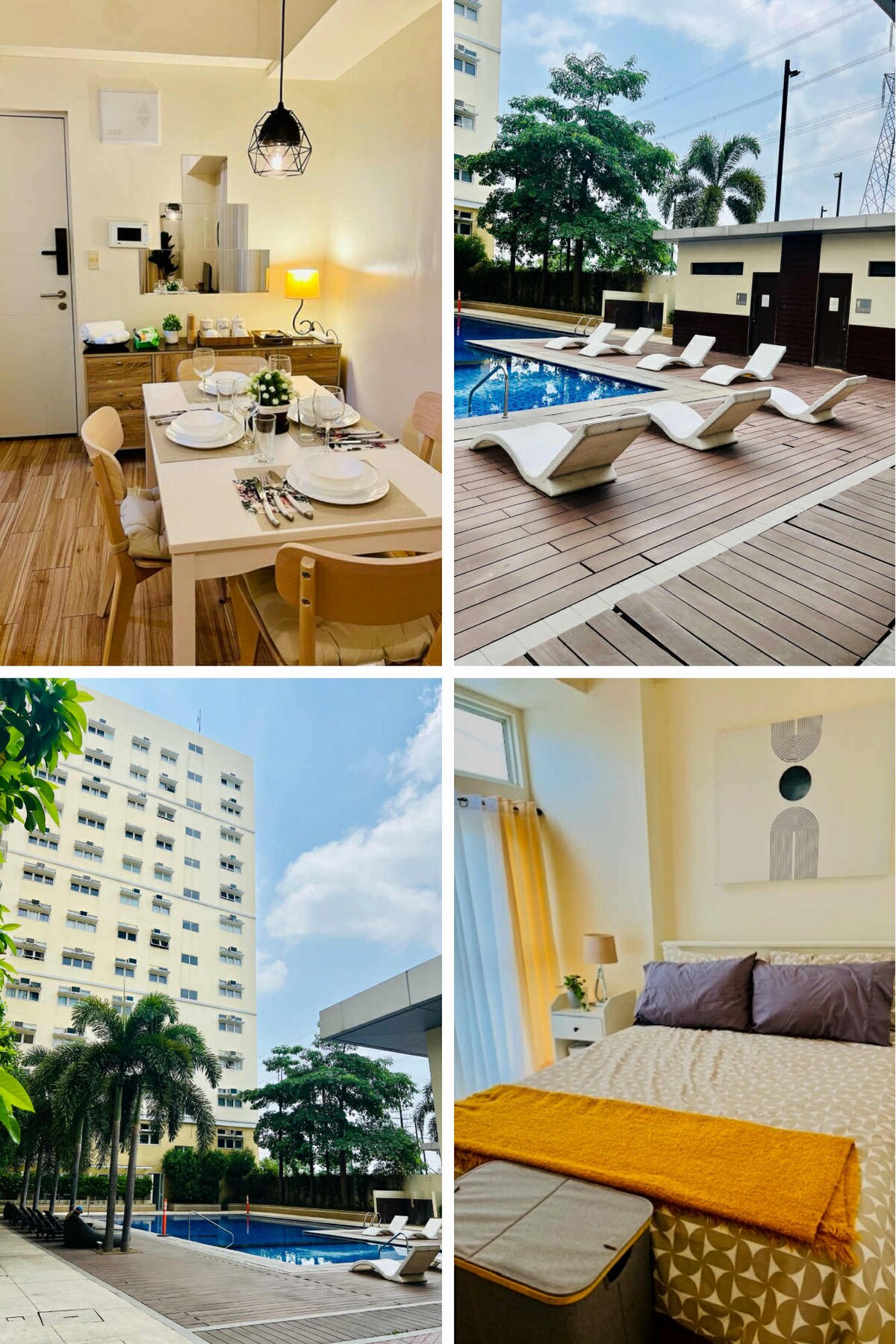Escape to a serene and cozy retreat less than an hour's drive from Manila. Nestled just a stone throw away from SM Sta. Rosa, our condo offers unparalleled convenience, with all essentials just steps away. Step into a haven of comfort with brand new amenities, including a smart TV and wifi. Explore nearby attractions like ATC, Nuvali, Enchanted Kingdom, Tagaytay, Batangas and all within easy reach. After your adventures, unwind by the pool, often all to yourselves. We are excited to hosting you!