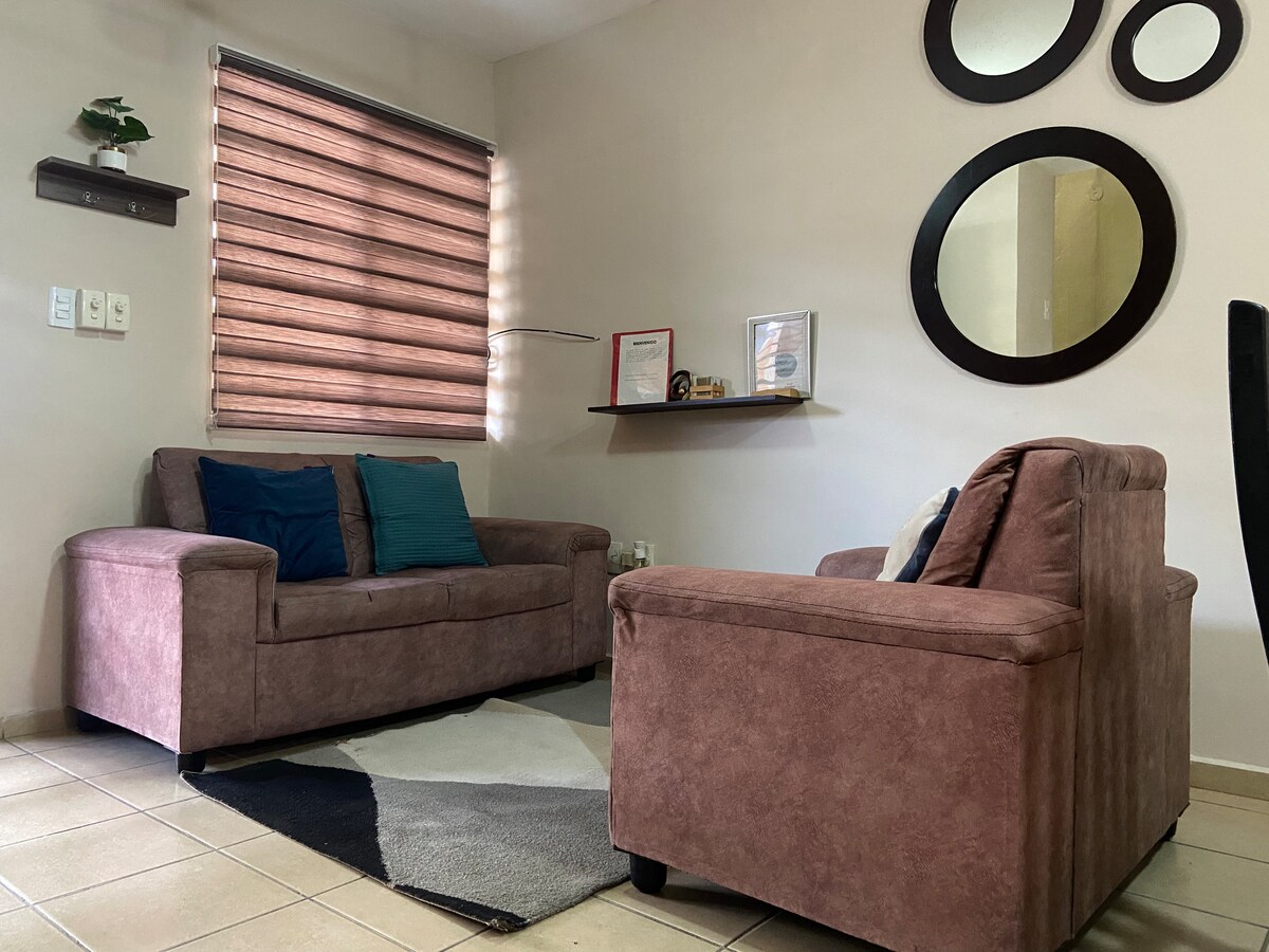 Enjoy this beautiful and centrally located apartment just a few blocks from downtown Madero, 10 minutes from Miramar Beach, downtown Tampico, and Altama. The apartment is on the second floor and features a smart lock, security cameras, parking, a spacious elevator, 3 bedrooms (2 with queen beds and 1 with a double bed), 2 full bathrooms, a living room, dining room, kitchen with a bar, 2 small pets are allowed, internet access, hot water, air conditioning, and is fully equipped.