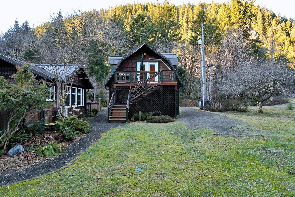 Welcome to our rustic one room cabin nestled in the woods of the rainforest. You will enjoy the warmth of a private cabin with a queen size bed with warm blankets and pillows. The room is warmed in minutes by a small wood stove or heater. The cabin is just steps away from a private bathroom shower house with hot water on-demand. It is located close to lakes, rivers, beaches, parks, and even the hot springs. Bring your bikes or e-bikes as the Olympic Discovery Trail is minutes away!