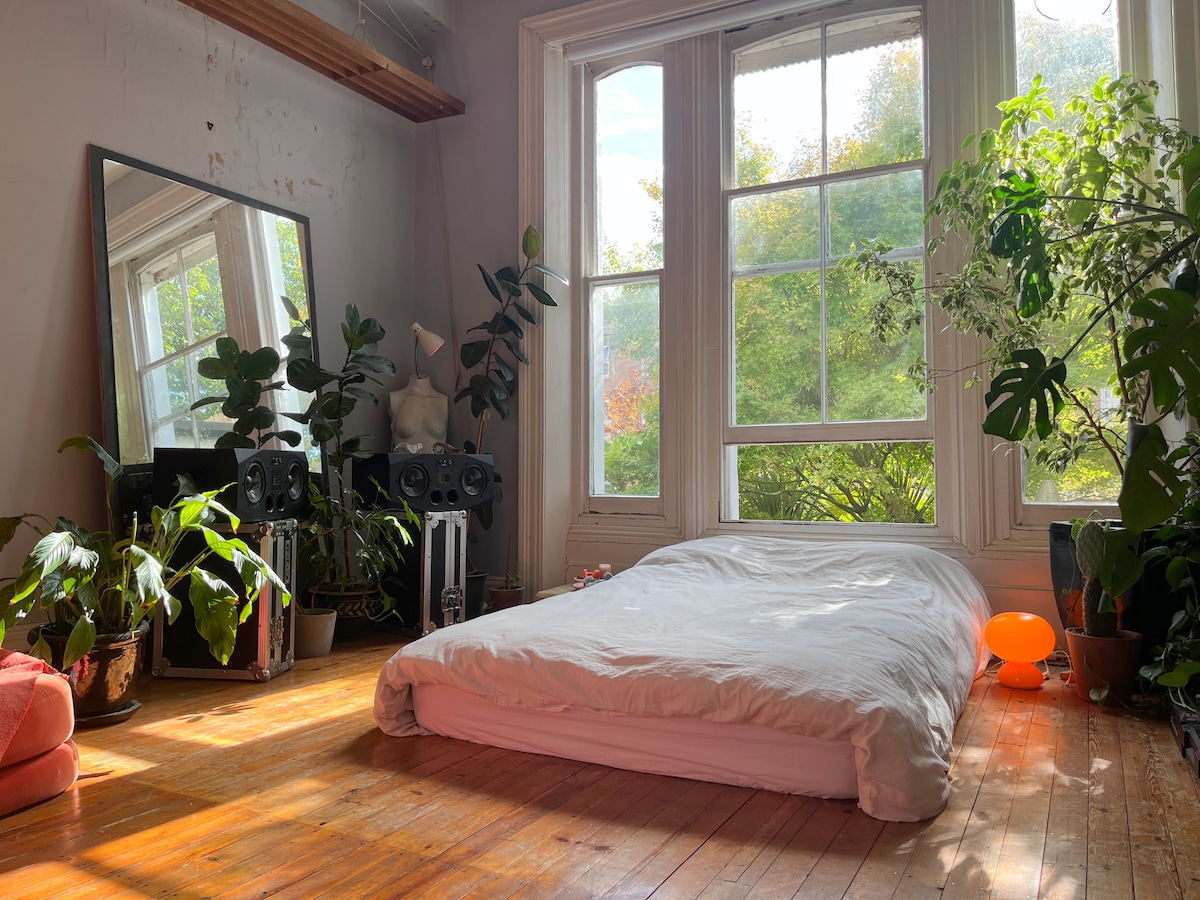 Beautiful, peaceful, one bed in a fabulous location near Mare St and Victoria Park. 5 min walk to Cambridge Heath station & London Fields, 15 min (or 5 min bus/cycle) to Bethnal Green tube. Lots of buses nearby, also e-bikes & electric car charging just outside. Off road parking space with grass and trees out front. Mid century modern style with brutalist details, suits those who value an intentional sanctuary. Lots of plants & light! Very comfy king bed. Vitamix blender for those who know 😍