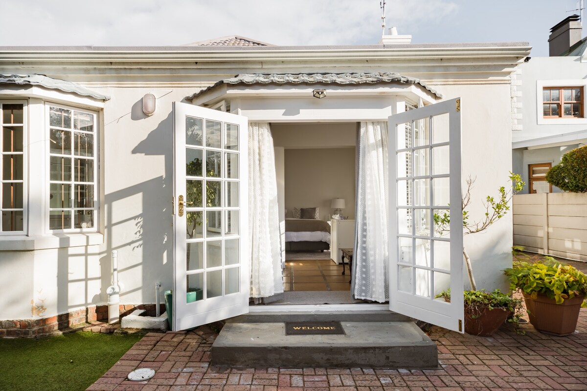 Տեղադրված լինելով խաղաղ ծառաշատ պարտեզում ՝ սեղանի լեռից րոպեներ հեռավորության վրա և UCT - ից ոտքով հեռավորության վրա, մեր քոթեջն առաջարկում է ջերմ արևոտ սենյակ ՝ երկտեղանի մահճակալով, առանձին լոգասենյակով և առանձին ինքնասպասարկվող խոհանոցիկով, որը հարմար է թեթև կերակուրներ պատրաստելու համար ։ Առանձին մուտք և Wi - Fi Մենք ունենք ինվերտոր ։ Քոթեջը սպասարկվում է ամեն շաբաթ, ոչ ամեն օր: Նախաճաշը պետք է կազմակերպվի տանտիրոջ հետ նախքան ձեր ժամանումը: Հարցրեք մեր ԱՆՎՃԱՐ գինու համտեսի երեկոյի մասին ։