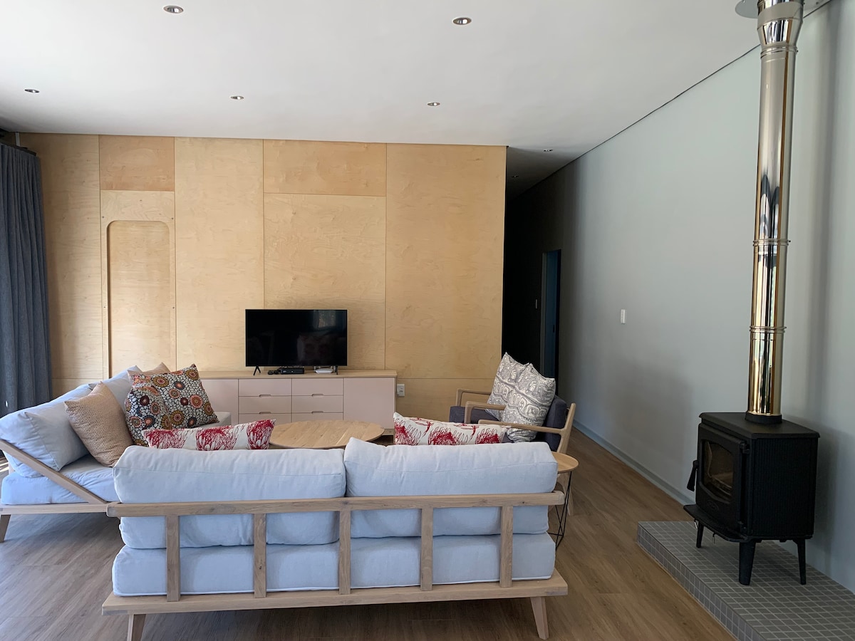 Clarens House is a modern minimalistic home, with unique features, a spacious open plan living area, and creative, relaxing outdoor areas to enjoy. The house sleeps 4 guests in two ensuite bedrooms. The arrangement is open plan bedroom/bathroom upstairs and closed bathroom downstairs. A minute's walk to shops and restaurants. There is an indoor braai which acts as a fireplace. Smart TV, DSTV and wifi provided. Additional guests or children will attract extra cost.