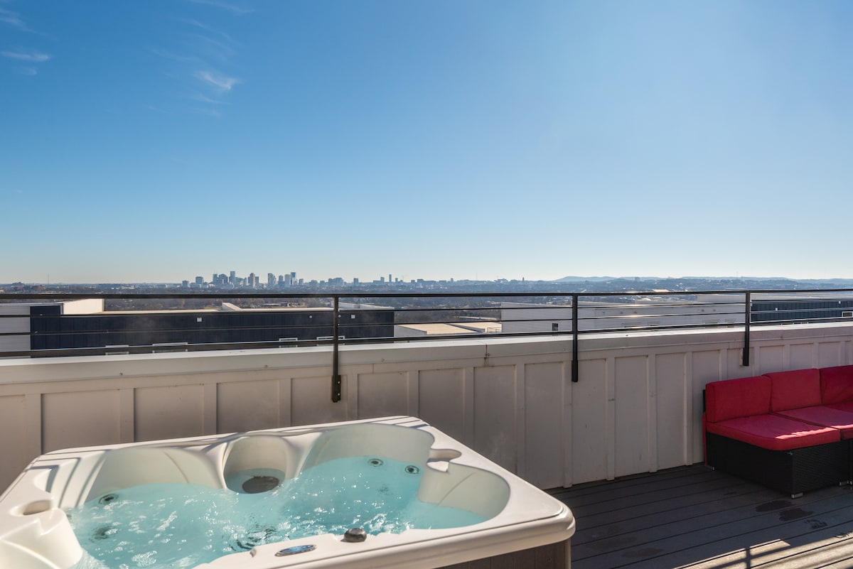 Relaxing Rooftop hot tub and city views!