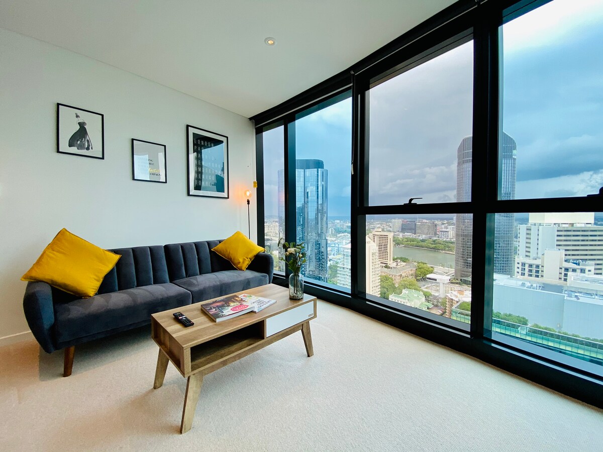 Our stunning riverview & botanic-garden view king-sized one bedroom apartment is perfectly for short term and long term stays. Situated in inner CBD, Brisbane’s SkyTower building is close to everywhere! Apt features include: -Spacious bedroom with King size bed and built in wardrobe. Fresh towels and linen provided. -Sofa bed in living area -Central air conditioning -Gas stove top with full chef’s kitchen -Hide away laundry area -Washing machine and dryer -Coffee machine -Smart TV -Free WIFI