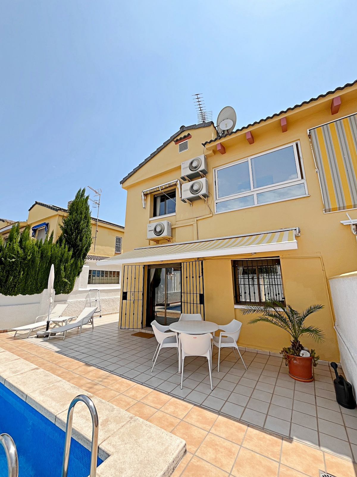 Close center and beach:semi-detached, heated -pool
