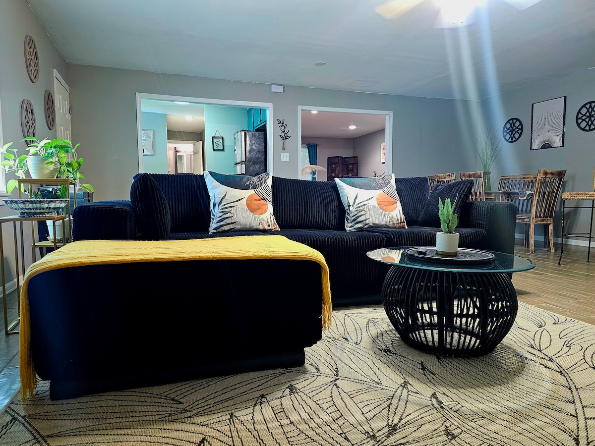 Վերադարձեք և հանգստացեք այս հմայիչ և ոճային տարածքում ։ Մեր 3 ննջասենյակով տունն առաջարկում է բավականաչափ սենյակ ՝ երեք ննջասենյակով և երեք զուգարանով: Ձեզ դուր կգա հարմարավետ սենյակը, որտեղ կա հարմարավետ սպիտակ բազմոց և աթոռ, որը կրկնապատկվում է որպես ֆուտոն, որը կարող է քնել 2. Բացի այդ, մենք ունենք երկտեղանի օդային ներքնակ, որը նախատեսված է լրացուցիչ երկու հյուրի համար ։ Առավելագույնը 10 հոգու համար նախատեսված այս գեղեցիկ տունը կատարյալ է ընտանիքի և ընկերների հետ ձեր հանգստի համար: