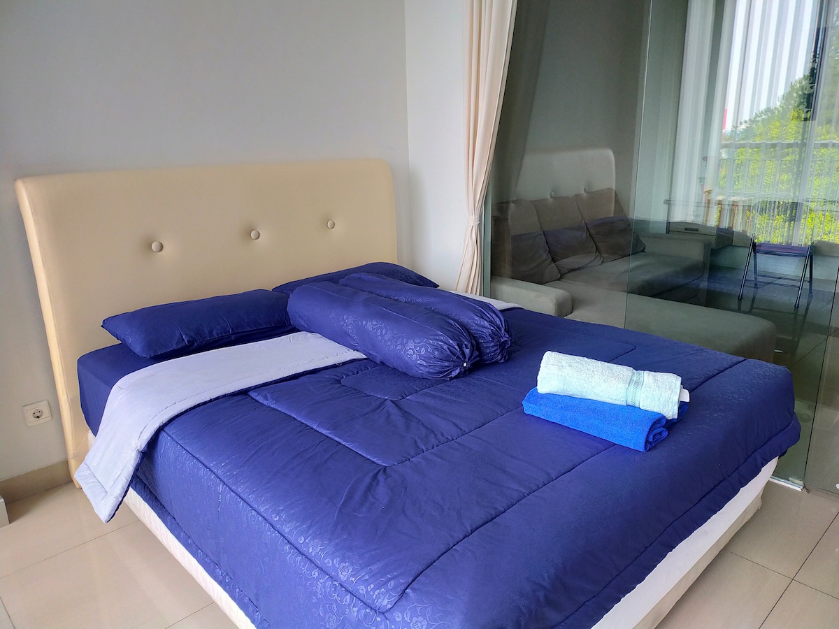 Immerse yourself in the vibrant heart of Bandung at this stylish studio on 10th floor of Parahyangan Residences. Enjoy modern amenities like a fully-equipped kitchen, high-speed Wi-Fi, and a 50" smart TV with Netflix. Indulge in resort facilities, contactless check-in, and nearby conveniences for a perfect staycation, holiday, or work-from-home experience. Now featuring a Reverse Osmosis drinking water, food waste disposal and new washing machine.