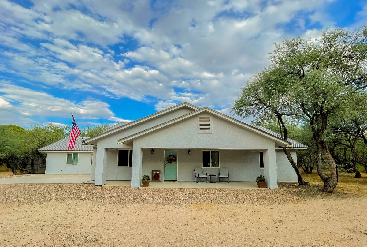 Թուսոնից 30 րոպե դեպի արևելք գտնվող այս գեղեցիկ գոհարն է ։ Նորակառույց համայնքում կգտնեք այս թարմացված 2 ննջասենյակով տունը ՝ W/ Office/Den (ֆուտոն )։ Եթե ցանկանում եք կարճ արձակուրդ անցկացնել հանգստյան օրերին, մտադիր եք այցելել Հարավ - արևմուտքի բոլոր տեսարժան վայրերը, որոնք առաջարկում են, թռչնադիտում, աստղադիտում կամ պարզապես մեկ գիշերով անցնել քաղաքով, ապա մեր տարածքը կատարյալ կերպով կհամապատասխանի ձեզ: Ամբողջ նոր կահույքը, WI - FI - ը և ՄԱԼՈՒԽԸ սմարթ հեռուստացույցի, լիովին հագեցած խոհանոցի և ՋԱԿՈՒԶԻԻ վրա: Հյուրերի օգտագործման համար նախատեսված աստղադիտակ ։