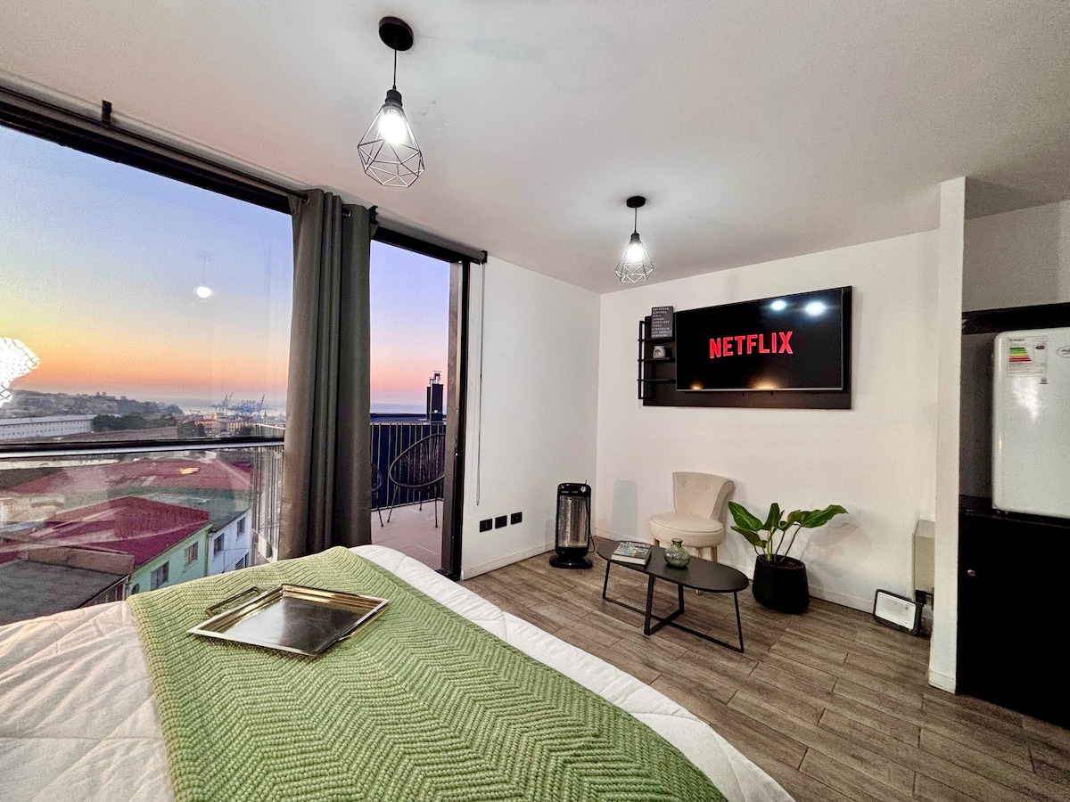 Նորաձև և ընդարձակ բաց կոնցեպտով բնակարան խոհանոցում/ճաշասենյակում/հյուրասենյակում, որը իդեալական է ընտանիքի կամ ընկերների հետ կիսվելու և ծովածոցի գեղեցիկ տեսարանը վայելելու համար: Այն գտնվում է քաղաքի սրտում ՝ Estación de Metro Puerto - ից, Muelle Prat - ից, Plaza Sotomayor - ից, el Peral վերելակից, Turri - ի ժամացույցից, որը կատարյալ է քաղաքով և նրա գեղեցիկ բլուրներով զբոսնելու համար: Արտոնյալ տեսարան ՝ նավահանգստի դիմաց գտնվող պատշգամբից կամ ննջասենյակից (10 - րդ հարկ) հրավառությունը տեսնելու համար ։