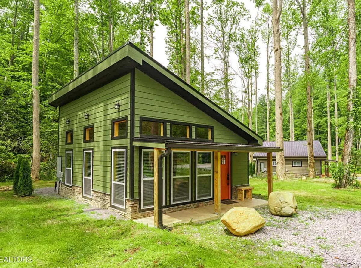 Escape to a private forest retreat nestled in the mountains beside a roaring creek. This charming one-bedroom cabin features exposed beams, hardwood floors, and a cozy wood-burning fireplace. A detached studio and peaceful outdoor gathering area create a unique setting to relax, reconnect, and enjoy nature. Includes a fully remodeled bath, laundry, grill, and picnic area for perfect mountain evenings. A peaceful, one-of-a-kind retreat to experience the magic of the mountains. ✨ #yonashousetn