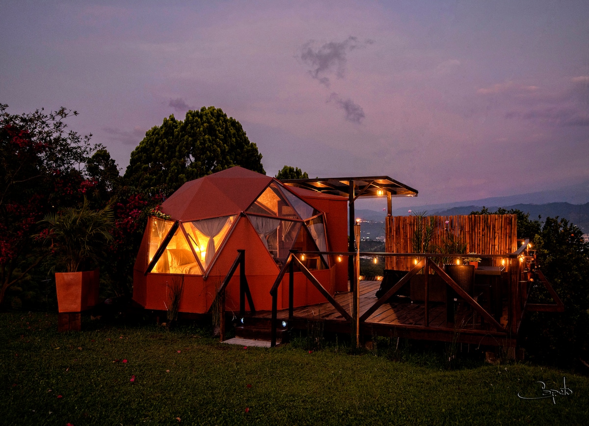Disconnect from your worries in this spacious and serene space. Coffee farm where you can connect your mind and body with nature, enjoy a pleasant climate and beautiful sunsets. Perfect Place To rest and disconnect from everyday life you will be able to spend unforgettable moments You will enjoy the birds singing, it is ideal for couples - It has a transparent Dome Glamping, Jacuzzi, outdoor shower, Breakfast 🍳 Included.
