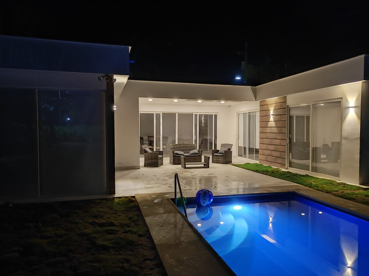 Moderna y amplia casa de playa con todos los servicios ubicada en conjunto privado vía a Cojimies. 3 dormitorios: cada uno cuenta con 1 cama queen size, 1 sofa cama, baño privado y aire acondicionado. Amplio comedor y sala, TV en la sala, internet rápido, cocina full equipada, 3,5 baños, agua caliente, piscina privada, amplio jardín y a 60mts de la playa. Ubicada a 4 horas de Quito en conjunto privado.