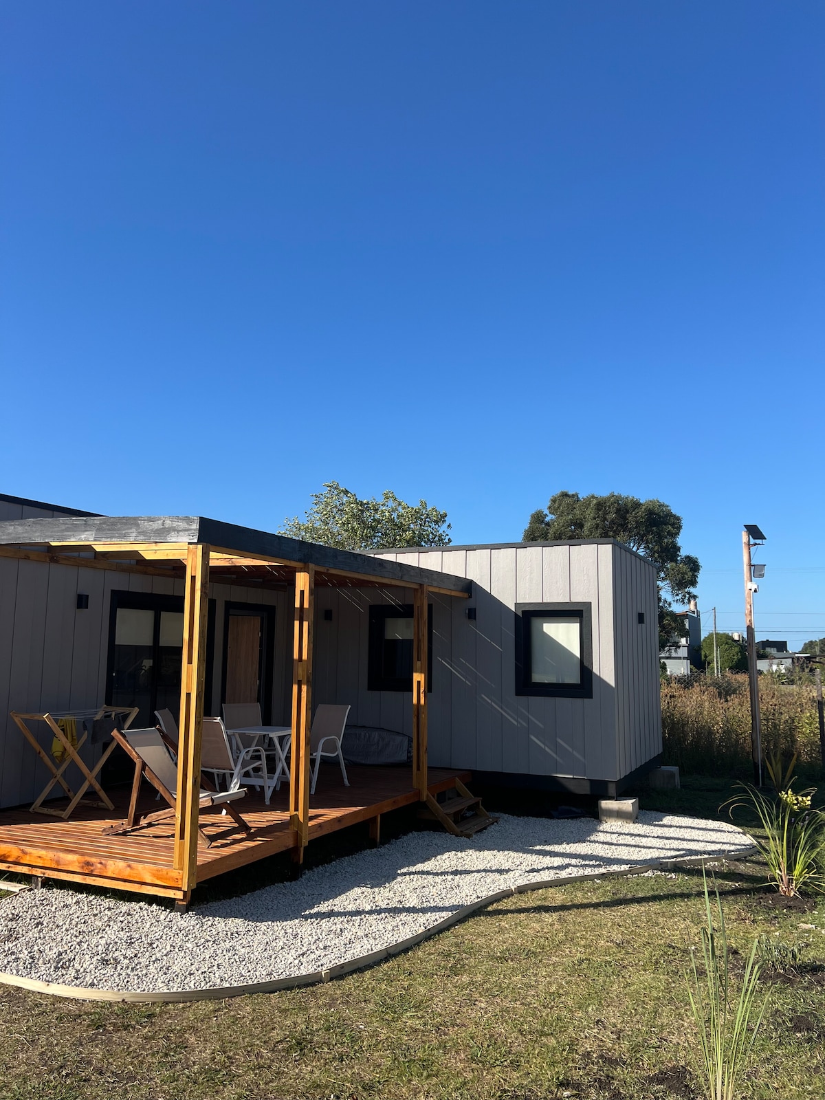 Es una casa armada con un container marítimo de 40 pies, el cual dispone de un living cocina con barra, un baño y una habitacion ideal para parejas y hasta con 2 niños max. dado que los espacios no son muy amplios.Tiene una galería techada de 15mts.x4mts, una pileta chica de 2 x 3 mts. y esta ubicada a 200mts de la playa sobre un terreno de 1900 mts. Posee aire acondicionado,calefaccion,termotanque y cocina eléctricos.En un entorno campestre playero super tranquilo a 25 min de Mar del Plata