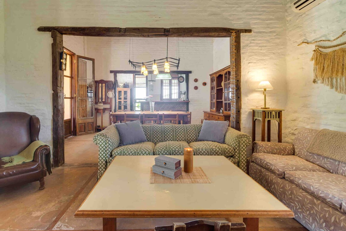 Bienvenidos a AlmaTierra Ecofinca Gracias por elegirnos , un espacio creado y cuidado con amor para compartir descanso, naturaleza y calma. Vero, Max y Jus, sus anfitriones. quienes abren las puertas de su hogar con mucho cariño para que vivas una experiencia auténtica de campo: aire puro, silencio reparador y contacto real con la naturaleza. Acá estarás rodeada de árboles añejos, un generoso ombú, pavos reales, gallinas, Es un lugar pensado para desenchufarse, relajarse dormir bajo las ⭐️