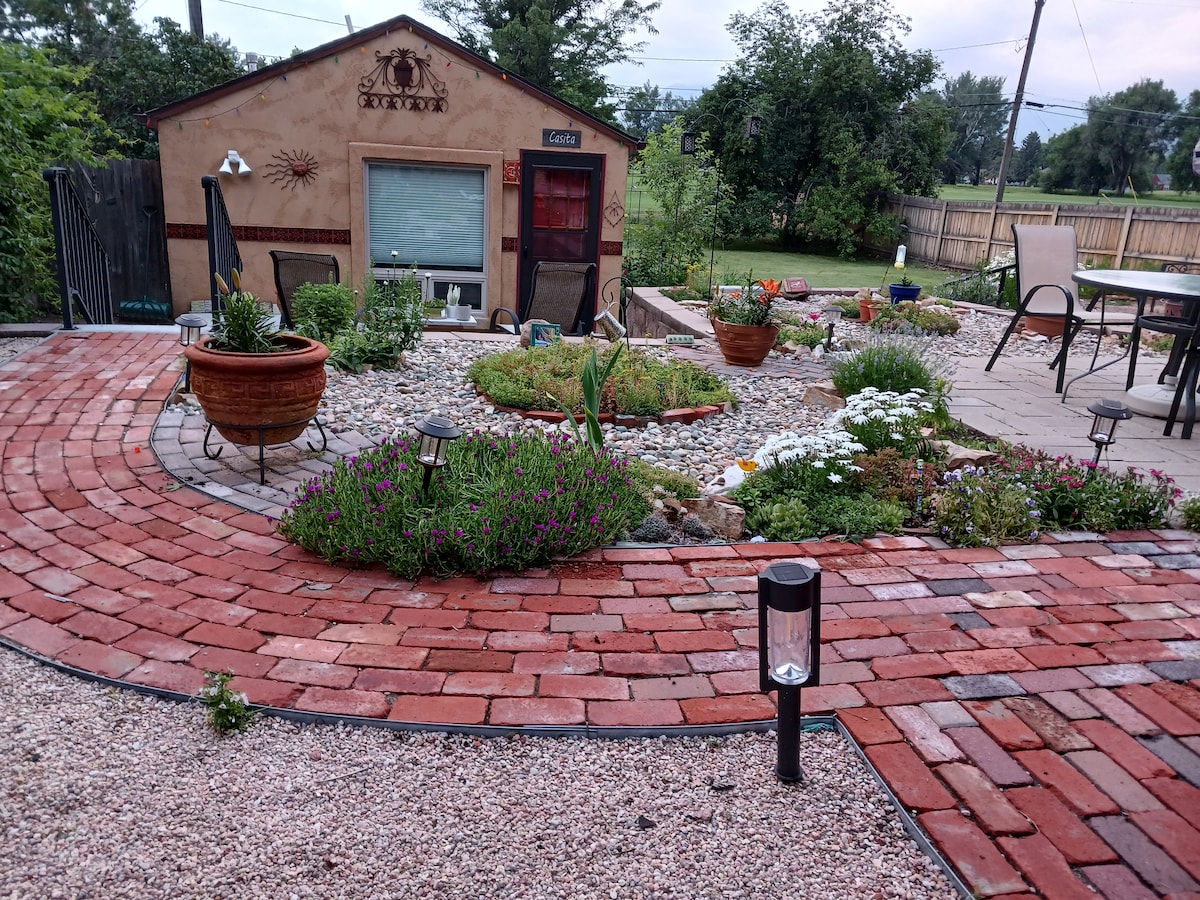 Our 1 bdrm 1 bath guest house is perfect for your Colorado Springs visit. Walk to Colorado College, bike to the heart of downtown, we're less than 10 min. from Old Colorado City, Manitou Springs, great hiking, mountain bike trails, & Garden of the Gods. Located downtown, in the beautiful Old North End, enjoy our Zen Garden and reflecting pond (drained in winter). Our place is great for parents visiting students or adventurer’s. Free street parking. The house is stocked with all you need.