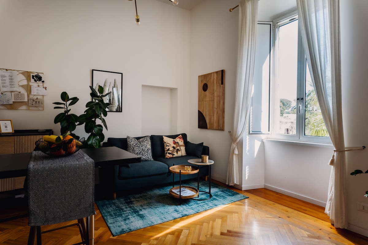 2022 թվականին ամբողջովին վերականգնված բնակարանը զարդարված է ճաշակով և մանրուքների նկատմամբ ուշադրությամբ ։ Գտնվելով տարածքի կենտրոնում, որտեղ գլադիատորները մարզվել են նախքան ասպարեզ իջնելը, նրա երկու մեծ պատուհաններից բացվում է հիանալի տեսարան դեպի Կոլիզեում: 75 քառակուսի մետրը լավ կառուցված է և կարող է հարմարավետորեն 4 հյուր ընդունել Հավերժական քաղաքի սրտում գտնվող 1900 - ականների սկզբին գտնվող գեղեցիկ շենքի առաջին հարկում ։ Երկու ննջասենյակ, երկու լոգասենյակ, Wi - Fi և օդորակիչ ։