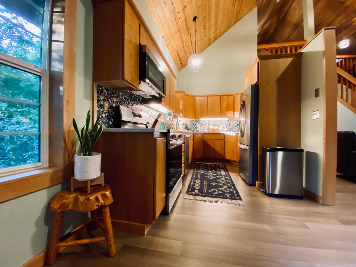 Welcome to your most memorable Airbnb! This one-of-a-kind handcrafted luxury cabin, built by a husband-and-wife designer team, is nestled in the serene woods of Clatskanie. Spanning 800 sq ft, it offers inspiration, relaxation, and unforgettable memories. Featured in several publications, the cabin boasts a clawfoot tub overlooking the forest and Columbia River, brand new appliances for home-cooked meals, a Traeger grill, a comfy King beds, a rustic large deck, and a bathroom with heated floors.