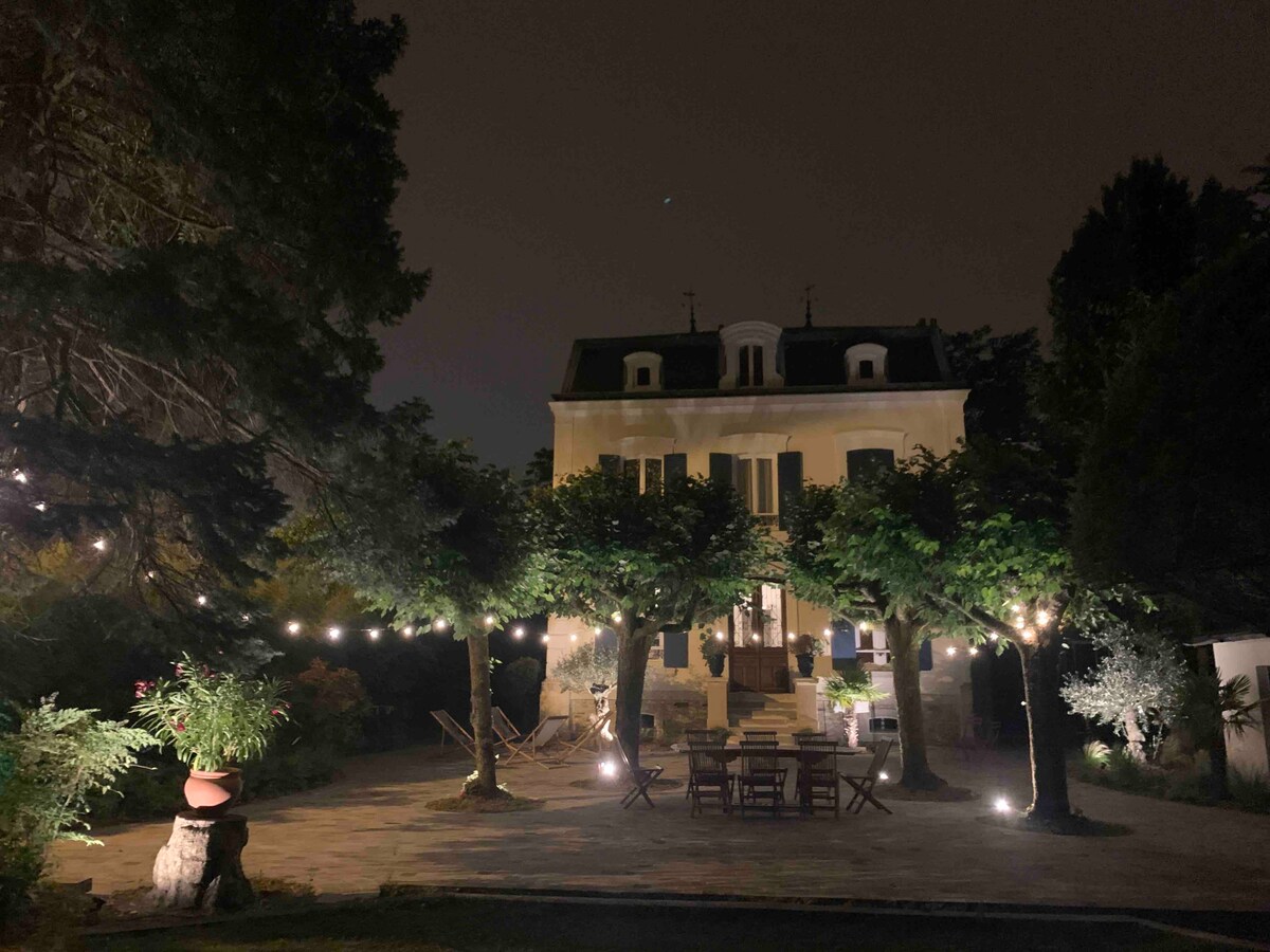 Էաուբոննի կենտրոնում, բոլոր խանութներին մոտ, Նապոլեոն III ոճի այս առանձնատունը ողջունում է ձեզ արտոնյալ միջավայրում: Դուք կվայելեք կանաչապատ և հանգիստ զբոսայգի ՝ Փարիզ կամ անտառ այցելելուց հետո հանգստանալու համար: Զվարճալի հարմարությունները հիացնում են երիտասարդ և ծեր մարդկանց ՝ ֆուտբոլային խաղով կամ մի քանի բասկետբոլային խաղահրապարակներով ։ Խորովածի երեկոները կտուրում կամ հյուրասենյակում ՝ բուխարու մոտ, կստիպեն ձեզ անցկացնել հրաշալի պահեր ։