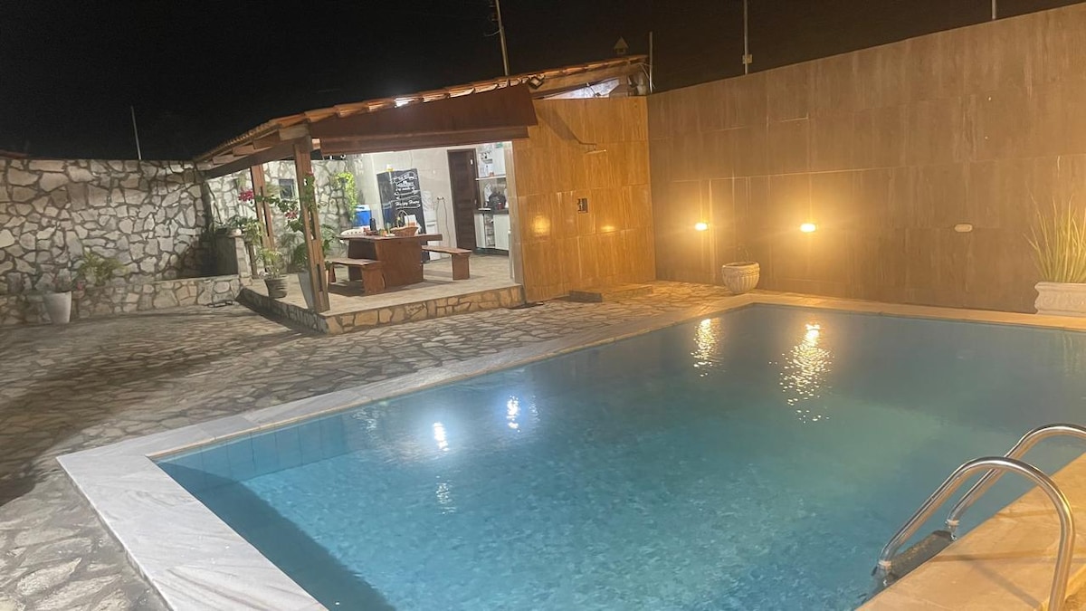 Relaxe com toda a família nesta acomodação tranquila. 3 quartos, sendo um suíte, banheiro social, sala de estar e cozinha amplas, varanda, garagem para 5 carros e área de laser com banheiro, piscina, churrasqueira, cozinha gourmet, espaço de jogos com sinuca pra reunir a galera e espaço de sobra! Imagina o churrasquinho no fim de semana, a piscina bombando e todo mundo curtindo junto.